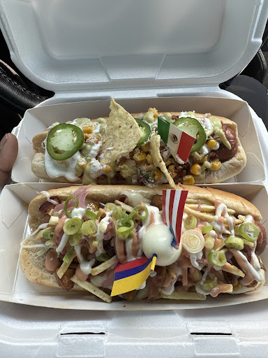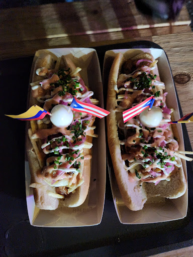 I ordered a hot dog that was a fusion of Puerto Rican and Colombian flavorsâit was absolutely delicious and came topped with a mini flag from each country, which was such a charming touch. The creativity and attention to detail really stood out.