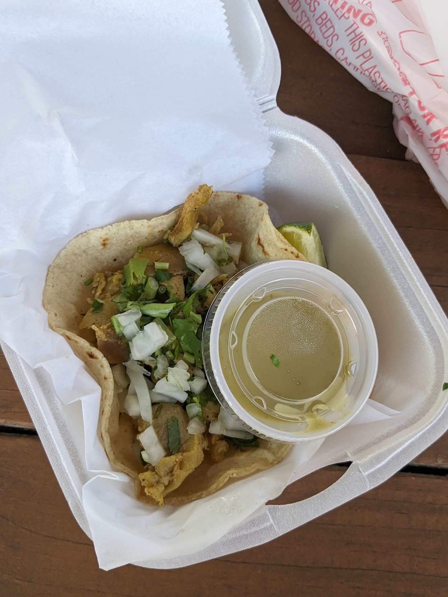 The food was so cheap that I bought way more than I could eat. But then I ate it anyway. I got a steak quesadilla, a steak taco, and a braised beef taco. The braised beef was amazing! I wish I had gotten that on the quesadilla. My wife got a marinated pork quesadilla, which was also delicious, but when I go back, which I definitely will, I'm getting a braised beef quesadilla and probably a steak taco.