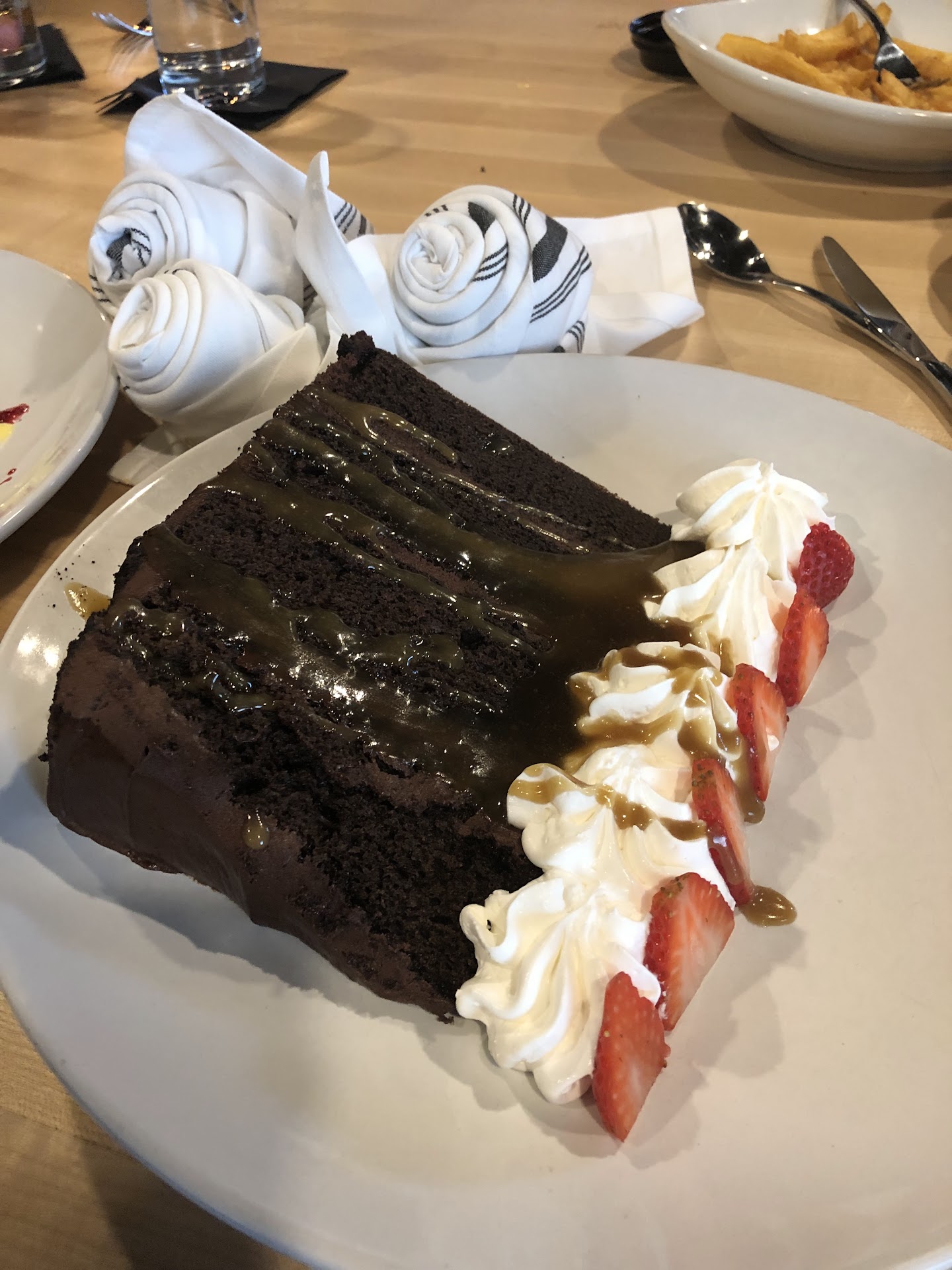 As for entrees, I got the 14oz ribeye while my girlfriend got the marry me chicken. My ribeye was definitely undercooked but that did not bother me too much. The marry me chicken might as well have been called the divorce chicken. Terrible taste to it and the pasta it came on had a terrible sauce to go with it. We did get a side of truffle fries which were quite good.