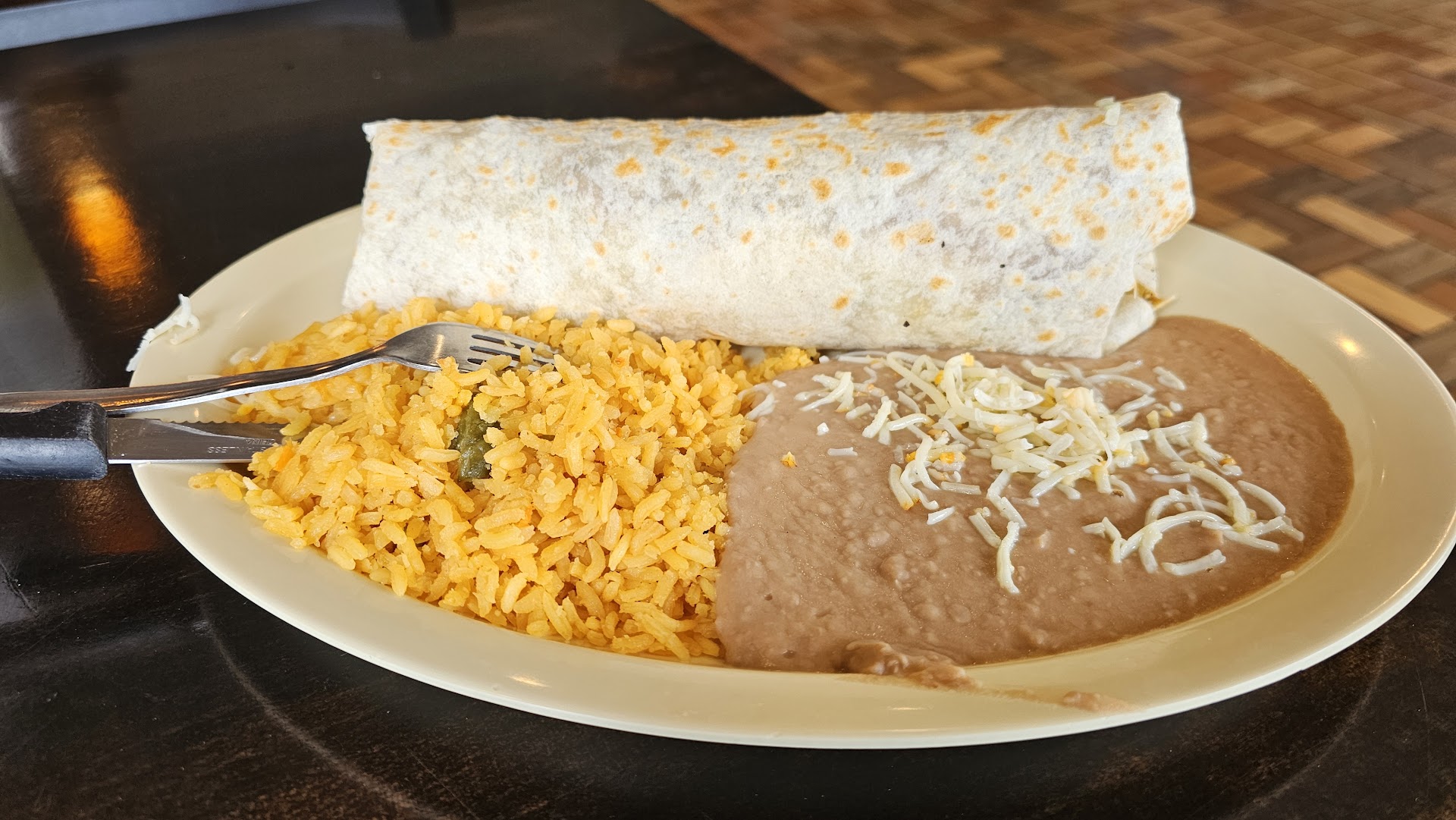 The steak burrito was very tasty. Steak was Seasoned well with a lot of sautéed green peppers and onions wrapped very well in the tortilla. It's a good thing I tasted it, before my husband started eating it, because he ate it in less than 10 minutes