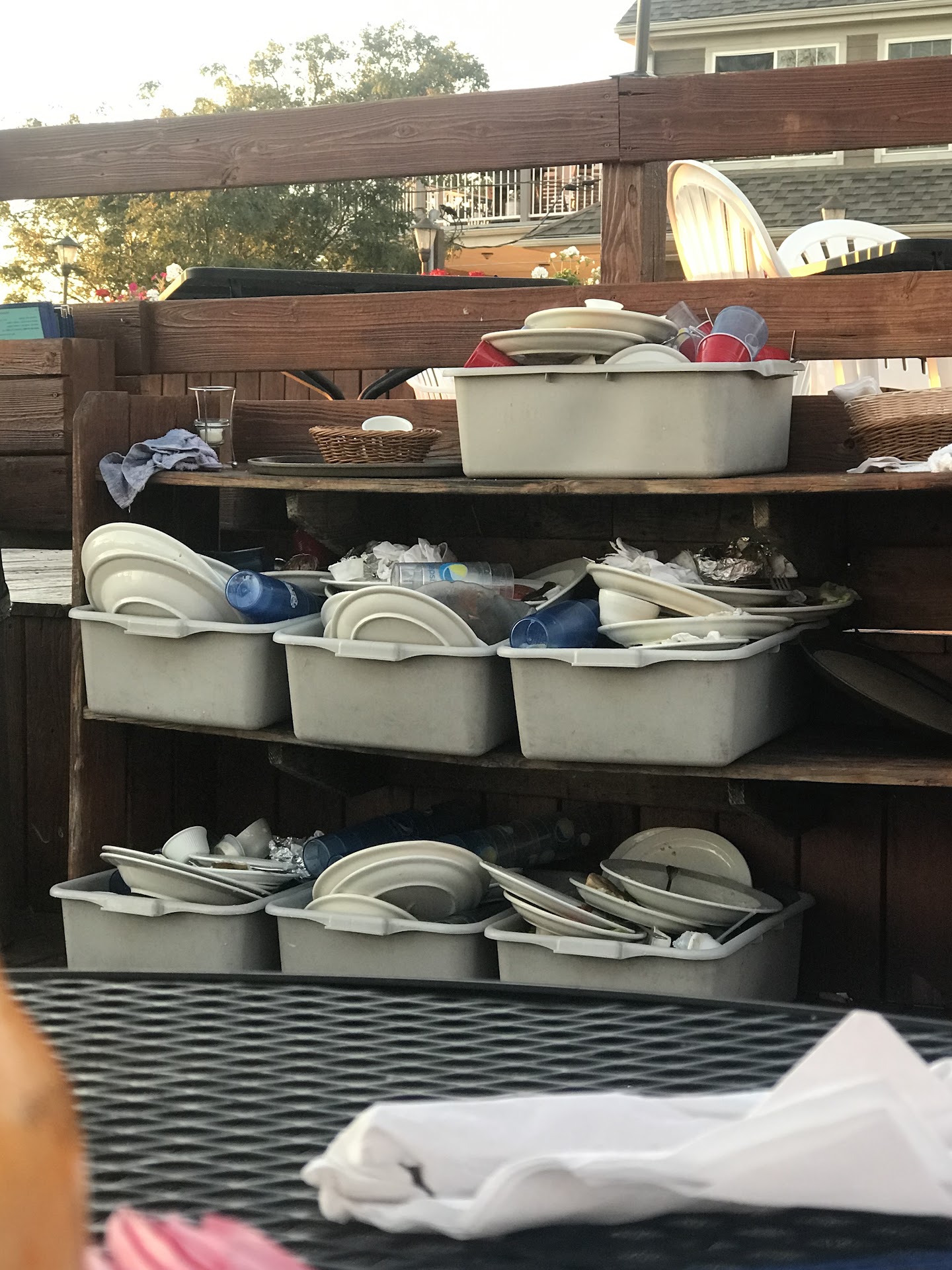 We requested a seat outside and while waiting for the hostess to put us on a list we were chided by an employee for "being in the way". There are better ways to request someone to step aside than saying "You are in the way move over there". Ok, that's fine, not everyone has manners or tact. After we were told that the wait would be about 15 minutes and we can sit on the upper deck and help ourselves to the bar for some cocktails. I took my companion's request for a drink and went inside to the bar to notice the poor bartender was grossly overworked. So I waited 30 minutes for the bartender to take my order, a margarita on the rocks and highball. She produced the margarita and a shot of something. I asked her what the shot was and she said "fireball". I told her that it was for a highball, she poured out the shot and proceeded to ring up my order. I asked her about the highball and she said "we don't have those". Really?!?!? A bar that's fully stocked cannot make a highball? My only assumption is that the poor lady was exceptionally overworked. So I took my margarita back to the upper area, gave my companion the drink that I wanted and waited another 15 minutes for our names to be called. When we realized that we weren't going to be seated any time soon we decided to leave.