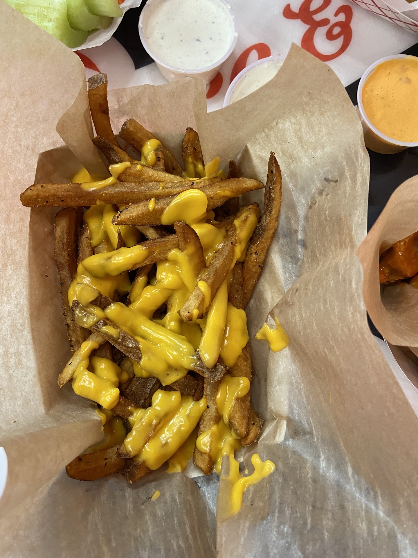 Service exceptional. Very polite guy, gave us more detailed explanations of some sauces, portions, options we had on different menu selections. Told us how long food would take as we were ordering (and which might take a little bit longer than others). We ordered 6 piece wing meal with cheese fries and pickle chips (we’ll working our way through the menu, but starting with the basics!). Portions were very reasonable, excellent mild Buffalo wing sauce. Fresh carrots & celery. Pickle chips tasty too, extra crispy. Did I mention the ranch dressing? Delicious (guy said they make it fresh every morning).