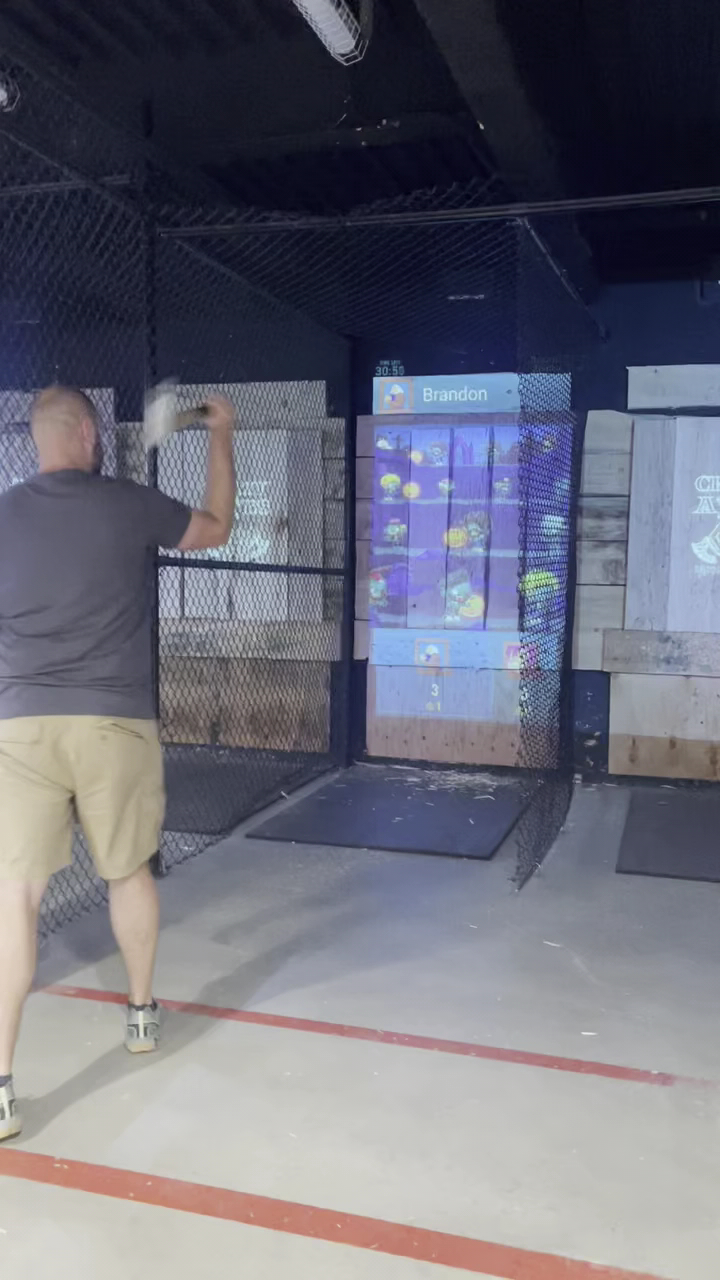 This place is also wildly expensive. We reserved the booth for 75 minutes (the first 15 minutes of which were taken up with our server showing us how the game works and waiting for each of us six to successfully get an axe stuck in the board). The bill for the 60 minutes of actual game time was $210. Top Golf is much less than that, and way more fun. Bowling is about a quarter of the price. The terrible food and overpriced drinks brought our bill up to $500. This is way too much for crummy food, crummy atmosphere, and a game that was very frustrating for half of our party. ...