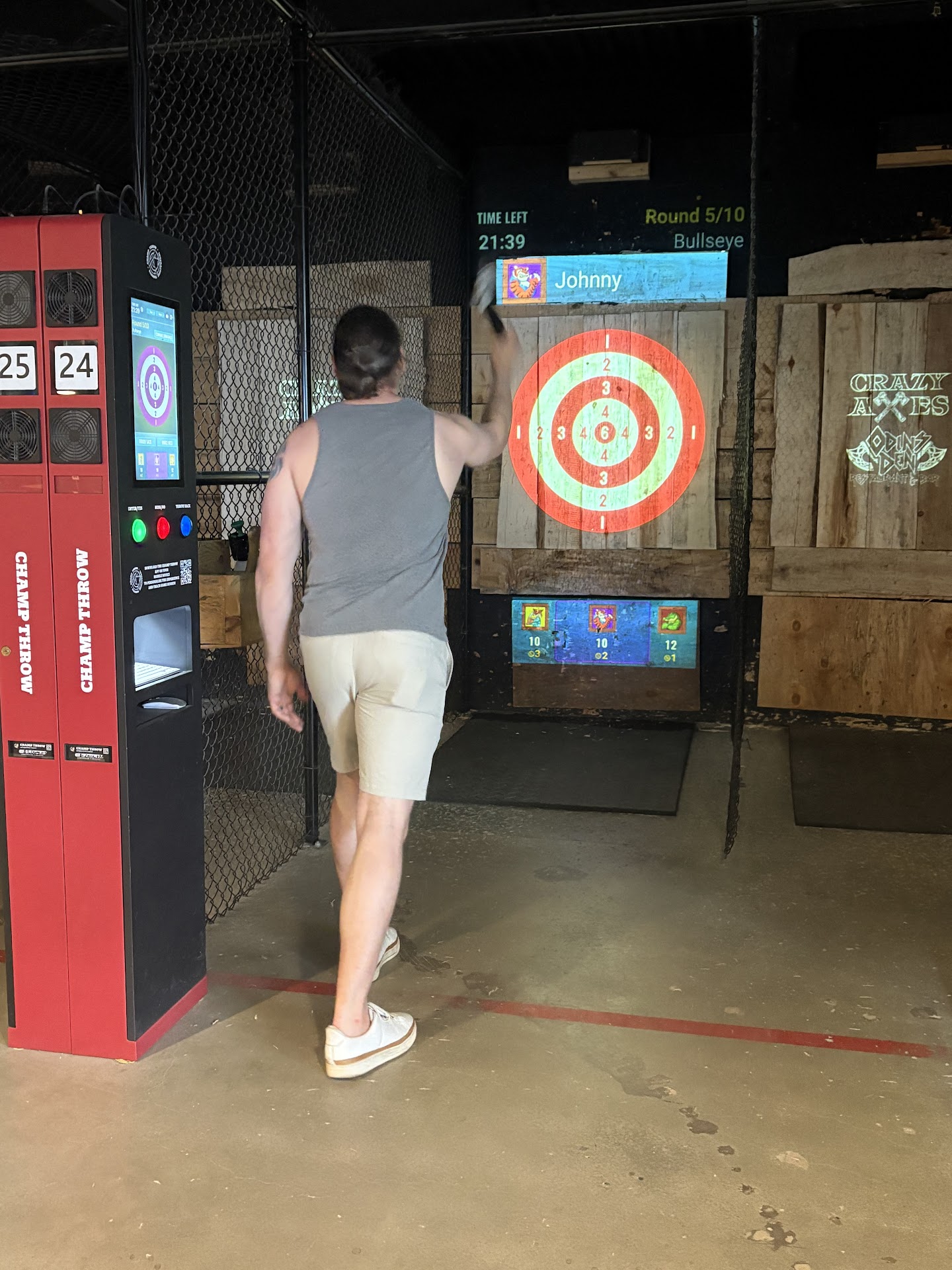 We went to throw axes and have lunch with 4 kids ages 10-14. While being seated someone came over right away to show us how to throw the axes and provide safety instructions.... no problem.... once he finished instructions we wanted to look at the menu with the kids and decide what everyone would eat and drink, but they started our 30 minute timer immediately which created some chaos and rushing to start playing while also trying to place an order for food and drinks. We understand time constraints in a place with "lane rentals" but having the ability to begin the game once you are actually ready would definitely allow the guests to enjoy their full 30 minutes (or however long they booked) if it was a busy night, I get it.... but it was a Sunday afternoon and there was only one other small party there.