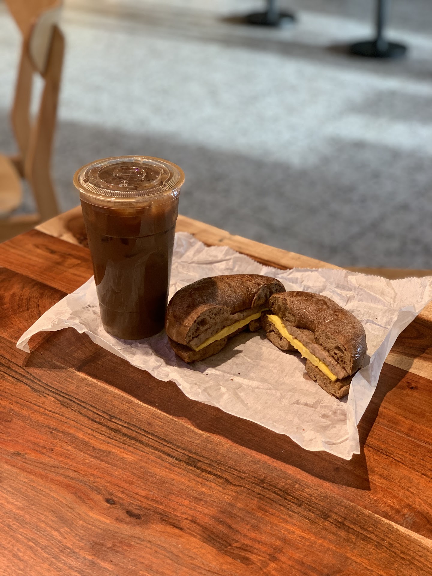 Ā Ā Ā Read more** Updated review 5/13/23. Just take a look at the breakfast sandwich I was served. This was not acceptable. A tiny piece of bacon, no cheese on this half and the egg looks like a dried up sponge. Very disappointed. Don't get a breakfast sandwich here. Bagels and cream cheese are good. *