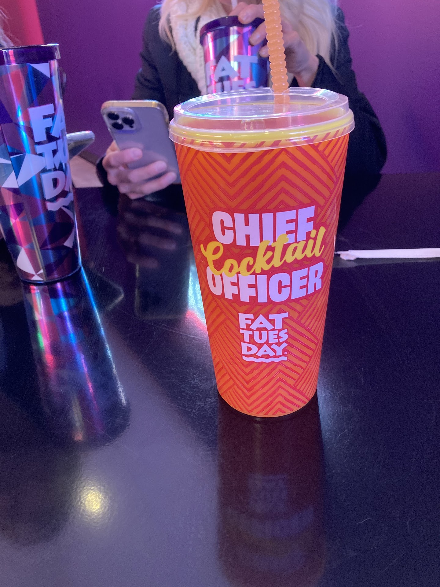 They have a small food menu but I haven’t tried any food yet. The price for the drinks are great for what you get. We got the souvenir cups so we can get a discount on refills every time we go. Right now the refills are only $10 😯 And the cups we have are 32 ounces. Such a great deal. If someone you go with don’t like frozen drinks they do have some beers. They also have a non alcoholic frozen drink for anyone who doesn’t drink or for kids. It’s called Eye Candy.