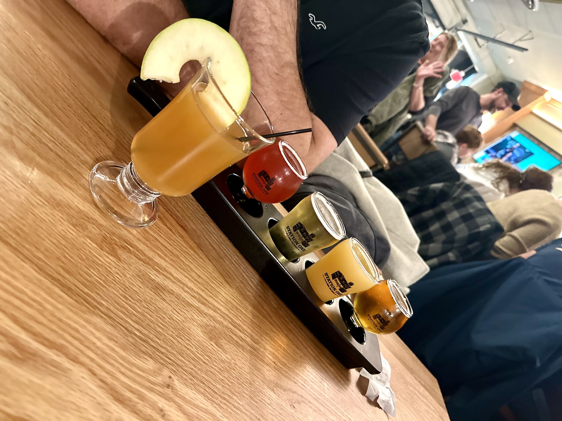 Extremely bad service at the bar. Sat at the bar for dinner. Looked like there were 4 bartenders. A good 5 minutes before being acknowledged and the counter was loaded with dirty dishes from previous customer while was waited. Ordered a beer and an appetizer. The fried calamari was very dark as it would happen using old or dirty fry oil. It tasted OK. Sat for over 10 minutes after finishing that and had to stop one of the bartenders and ask them to take our dinner order. We ordered. Food was slow coming out. The Nashville hot chicken sandwich was extremely fried and very dark colored and very greasy. It had zero flavor. There was even a grease puddle on the plate. No heat, no seasoning, nothing. Nashville chicken is supposed to be sorta spicey. This was just greasy flavor. The French fries were at least seasoned. Very disappointed. The butternut squash dish was ok. Hard to find the pieces of butternut squash in it. They were microscopic. The bartenders never checked on us to see how things were. I would have told them about the poor tasting food. They were not too busy behind the bar especially since there was 4 of them. The beers were good, but they were sold out on many of the beers on their beer list. Not good for a place known for its beers to run out of many of their beers. Beer prices were good. Mens restroom had an overflowing trash barrel. They need a bigger one or at least 1 of the 3 or 4 hosts working need to check there once in a while and not play in their cell phones.