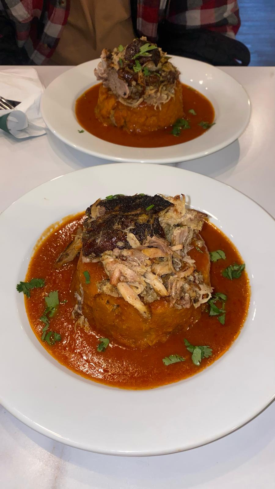 Just ate here for lunch for the first time and it was a great experience. Beautiful interior, good music, great service. The food was delicious I will definitely come back for dinner with more friends. The mofongo de chicharron was to die for and I’d recommend their sancocho (telltale sign it’s a proper Dominican...
