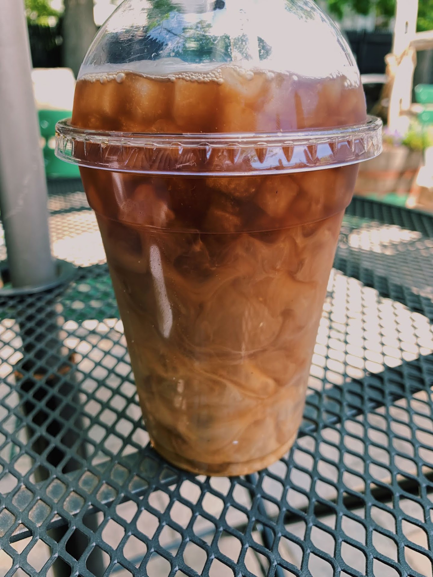 The inside of the store was clean and the menu was easy to read. They have tables and a high-top bar inside and 6 tables outside on their little patio. It is tucked off behind the shop / away from the street, so it was super calm, shaded, and enjoyable. The tables were distanced enough from each other so I definitely did not feel like I was sitting on top of other people there.