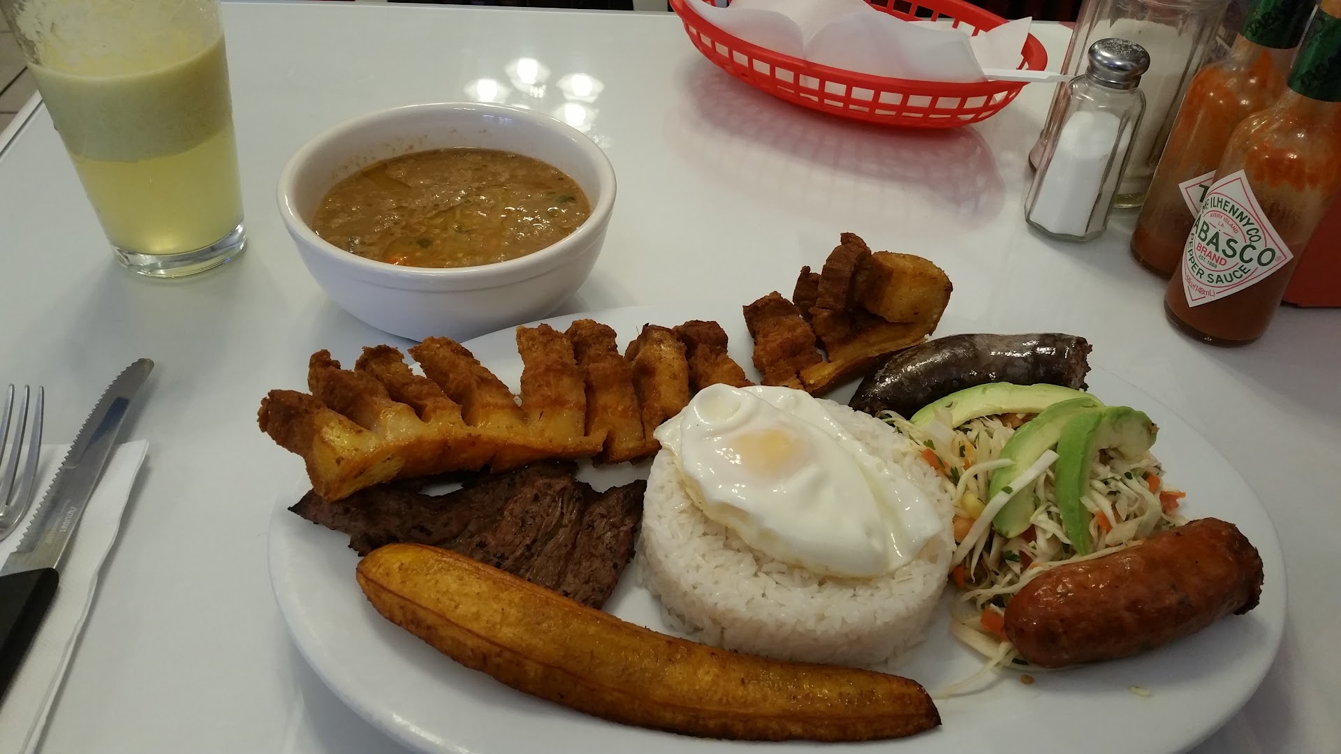 Tough first impression of Pueblito Paisa, though it was a mixed bag with potential for improvement. Ordered over the phone, serve staff was nice, order was ready only slightly later than the expected time, and prices are decent (although not listed online). The big HOWEVER — about half of the food simply wasn’t good.