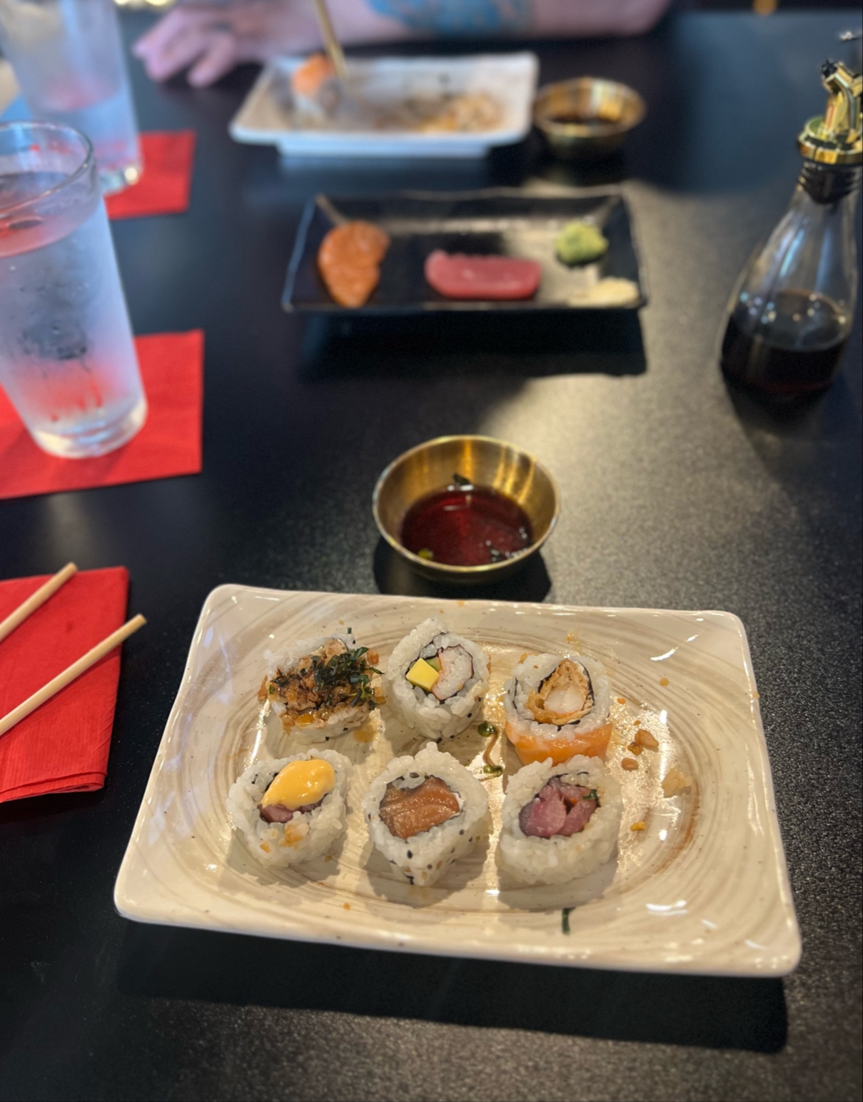 The main sushi menu leans heavily into American-style fusionāfeaturing deep-fried rolls, salmon-forward combinations, cream cheese, and bold experimental flavors like Dorito seasoning. While the creativity is appreciated, the overall execution could use improvement. Many of the rolls shared similar textures and flavor profiles, dominated by fried elements and sauces, with limited freshness coming through.