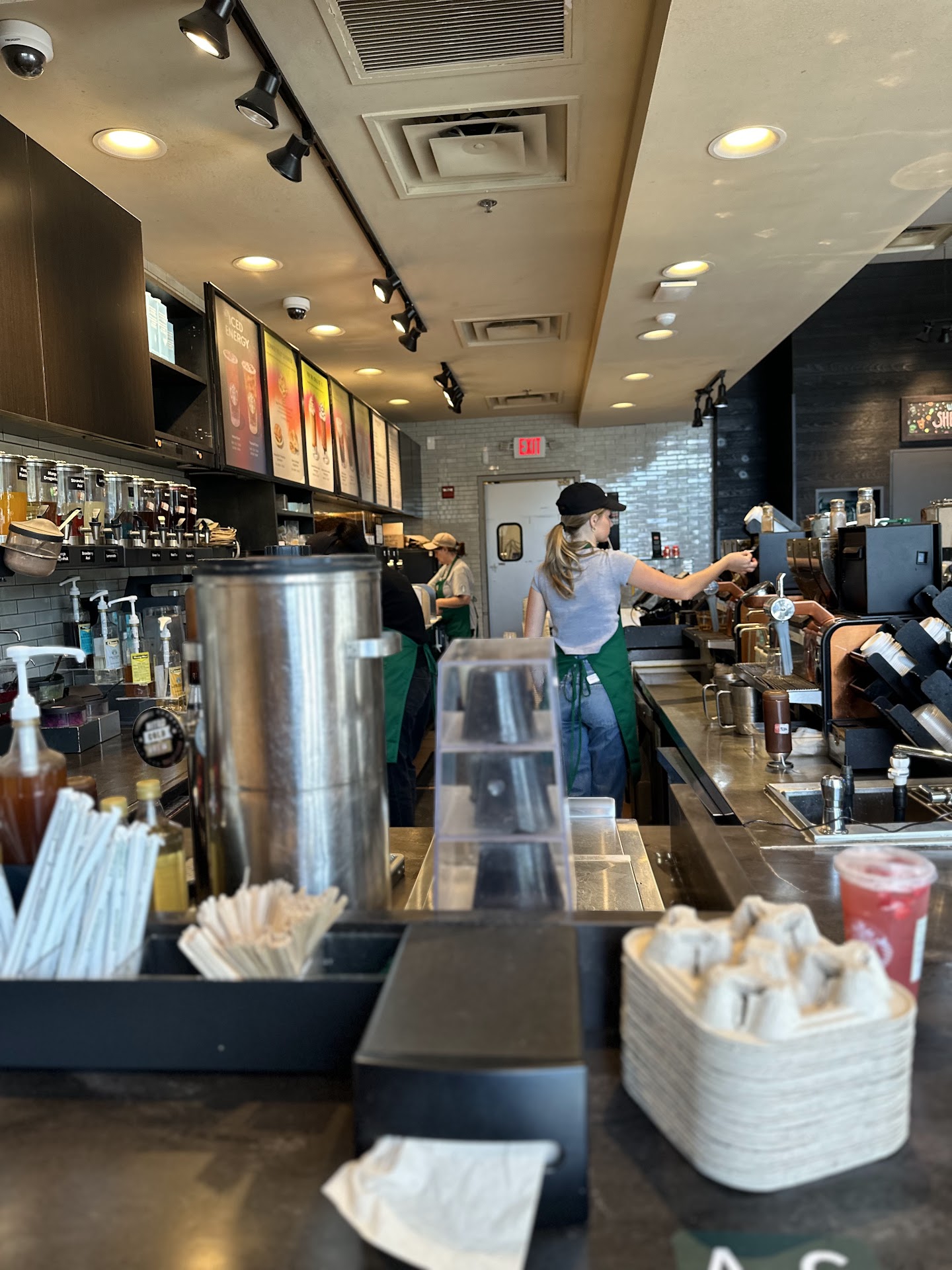 Usally my orders are correct and crew are super helpful and friendly. The one star for this visit. Yesterday I came in at around 5:45pm I placed a mobile order. I went inside to get my items. They were only two Icustomers waiting. There must have been eight employees. And i'm not sure who the manager was Because they was in the back. My items were correct that is not the issue. The issue was there was a new girl training to make the drinks. There were 4 people Doing the drive thru laughing and giggling, But working. This poor girl in front counter was so nice but nobody was helping her. When she turned to ask for help the crew all looked upset. How Do I make this? When you train someone new You should have someone with them at all times that goes for any job especially if it's their first few days. Whoever the manager was yesterday clearly didn't care that there was a new girl who needed help. The other employees were not helpful at only when the line got bigger. Did they come up out of the drive thru and start making drinks and food. Sure the wait time was a little longer 20 mins for my mobile order. I understand about the coffe and fast food service because I work at our local fast food chain as a manager. And I never would ever leave someone that's brand new alone to fend for themselves. Especially with making all these coffees they're not cheap coffee is they're very expensive. So please be kind to your employees train them properly. Good job to the new employee she was so polite and didn't get frustrated. Very...