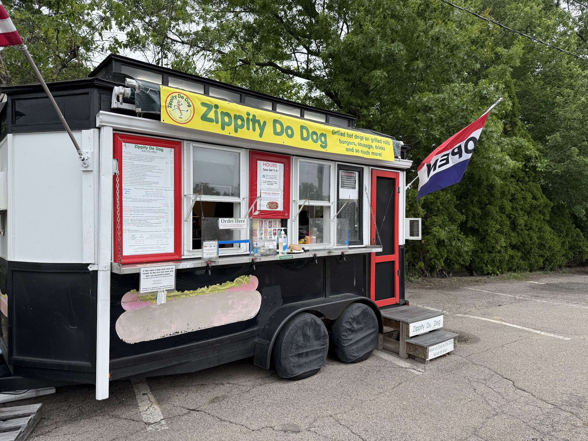 I moved to Framingham last summer and keep driving by Zippity Do Dog - except I drive by when they’re closed. But today when I drove by, they were open! My husband got a Hawaiian Dog and I got a Pearl Hot dog (because I prefer beef) with onions, cheddar, and brown mustard. We both really enjoyed our dogs. They were delicious! But more importantly, the guy who runs the business is really nice. He has a “pay it forward “ program where he’ll give free food to anyone who is unable to pay, and other patrons can contribute toward that program. It was my honor to contribute today. The food is made in a converted trolley car that sits in a parking lot. Plenty of parking, and a few picnic tables around. I brought our dogs home so didn’t experience the tables. All in all, a great business, yummy food, and they...