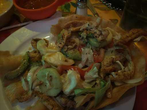 The tortilla chips were badly broken and hard. I did not enjoy my taco salad. It had cucumbers ,radishes, mushrooms, and onion. No sour cream or shredded cheese. Totally not what I am use to. Other family members had fish tacos (whole piece of tilapia )on flour shell, fajitas(came out sizzling), queso cheese was cheese that thickened by the end of dinner and was a mix of yellow and white cheese. We are use to QUESO being white cheese only. It was a waste. Big bowl for $6 though. Beans are pintos or black beans. We are use to refried beans.