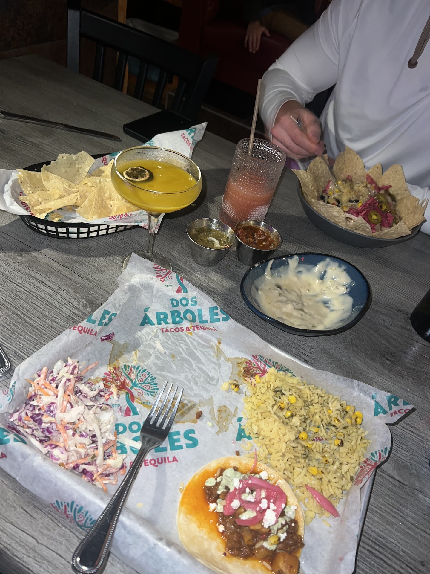 Some good: the churro rings were delicious (but seem like they should have come with some kind of caramel or chocolate dip? they came with nothing). I forget what it was called but the shrimp taco (camarones maybe?) was very good. The chorizo was not. Remember the serving size to price is insanity still.