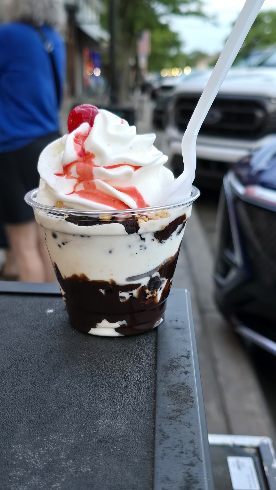 Read moreOrdered a double mint chocolate chip in waffle cone on July 7, 2017. The boy scooping it (short, dark brown hair) didnt use adequate arm strength when scooping and gave me about 1 solid scoop. I asked politely for another scoop to make it true double scoop. Then, a rude young girl (long, blonde hair) that also worked there said that was a double and anything extra would cost more money on top of the $5 cost of the cone. I chose not to cause a seen and went on my way. Certainly wasn't 10oz like the double is...