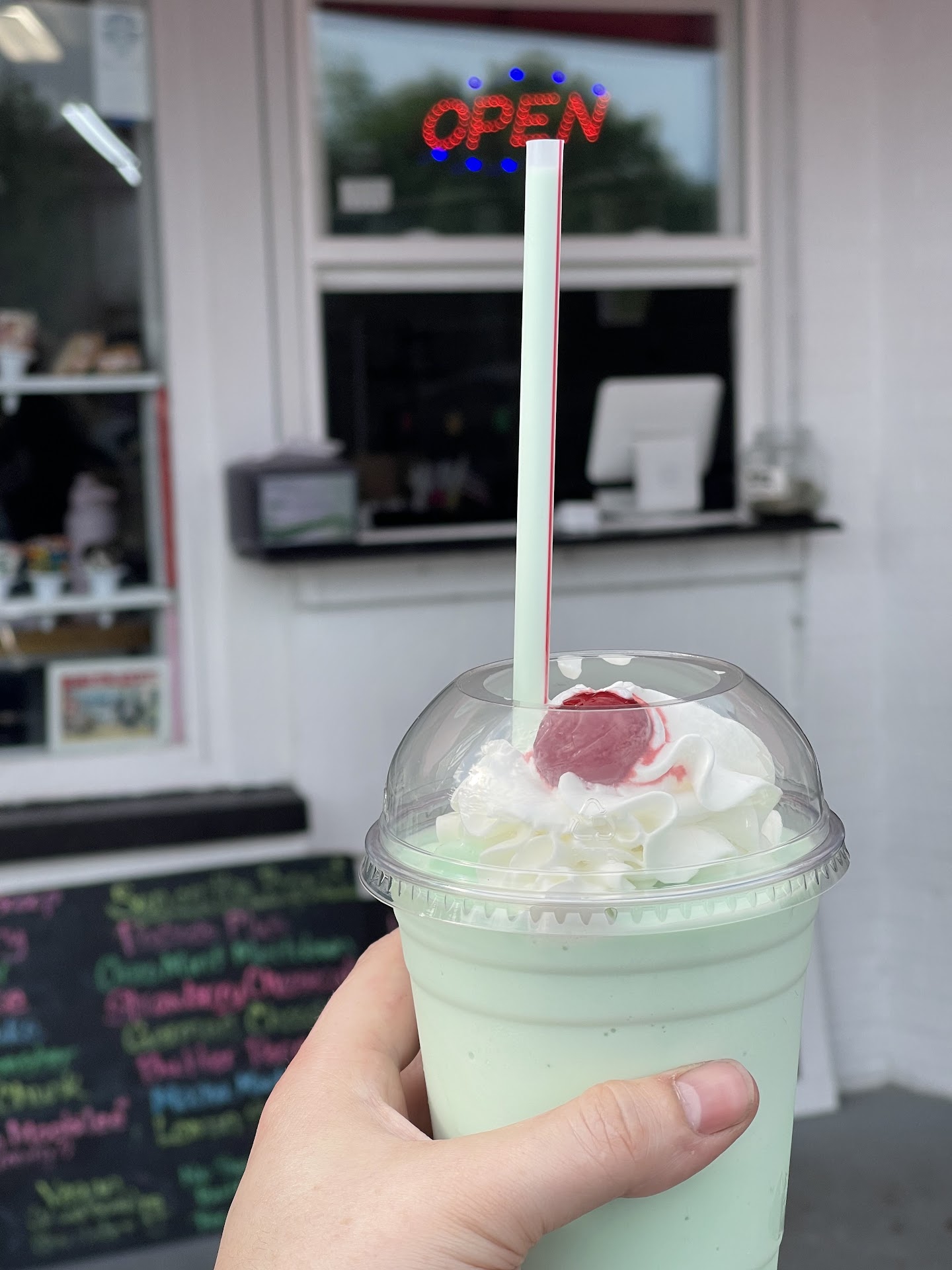 Read moreThey have an amazing variety of dipped waffle cones to choose from- it’s a little mind blowing. It was a hot day and they just had you order from the window, which was a bummer to not get to see the ice cream options, but just have to choose from a board. The PB chunk was pretty solid; the brownie batter was disappointing- mostly vanilla. My daughter loved her cone with mint chocolate chip and coffee caramel flavors.