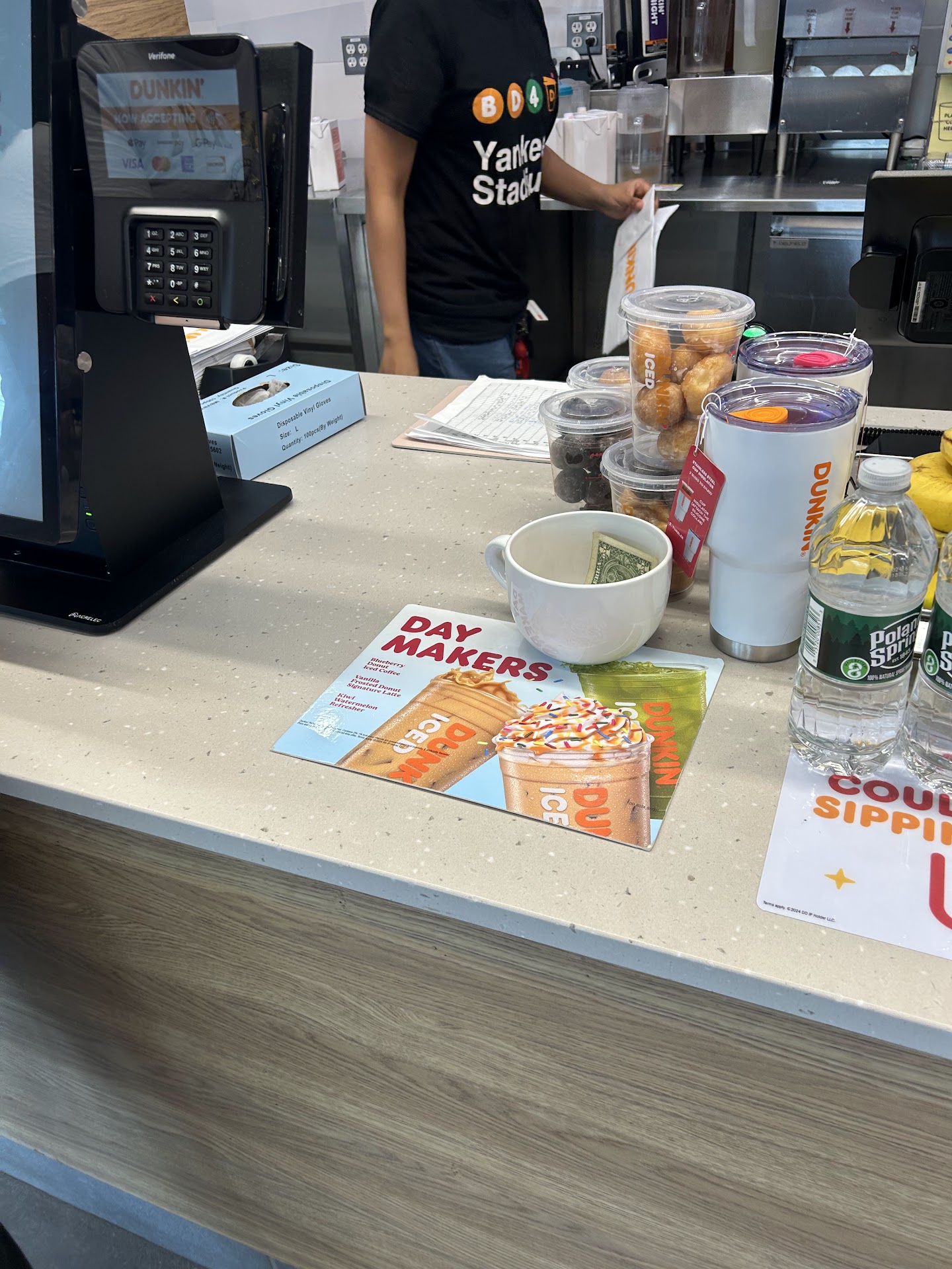 Read moreCashier ringing up my order was polite. The young lady that worked on my order got the ticket wrong. I asked her to redo my order because I asked for no cheese on one sandwich. She takes the order back, thought that I was not watching. Dumped the sandwich and paper over the garbage, proceeded to use the same paper that was waved over the garbage can..... After I called her out on it, she became defensive. I asked her to get a new pair of gloves, a new paper and redo my sandwiches. Please keep in mind DD was my first job, so I GET IT! Your managerial staff should retrain their staff at this store, before someone becomes ill! And to top it off, my order was still...