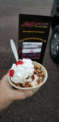 Great selection of food and ice-cream. From Burgers and fries to custom made sundays J & D is a great place to stop for some friendly Pennsylvania hospitality. Pricing can be reasonable if your selective about what you put on your ice-cream Sunday. Don't pile on the toppings if you want to keep the cost down. Food pricing is not like other fast food chains. It is a roadside quality stand so expect the same pricing. It is also near Knobels so it's a great break from the hustle and bustle of the amusement park. Right across the street is camping by the same company. Didn't stay there because it is right next to the highway. Well worth a stop for great service and top quality Sundays custom made from one of their 50 great flavors. I had cherry ice cream with loaded toppings...... Mmmmmmmmm perfect! Thank...