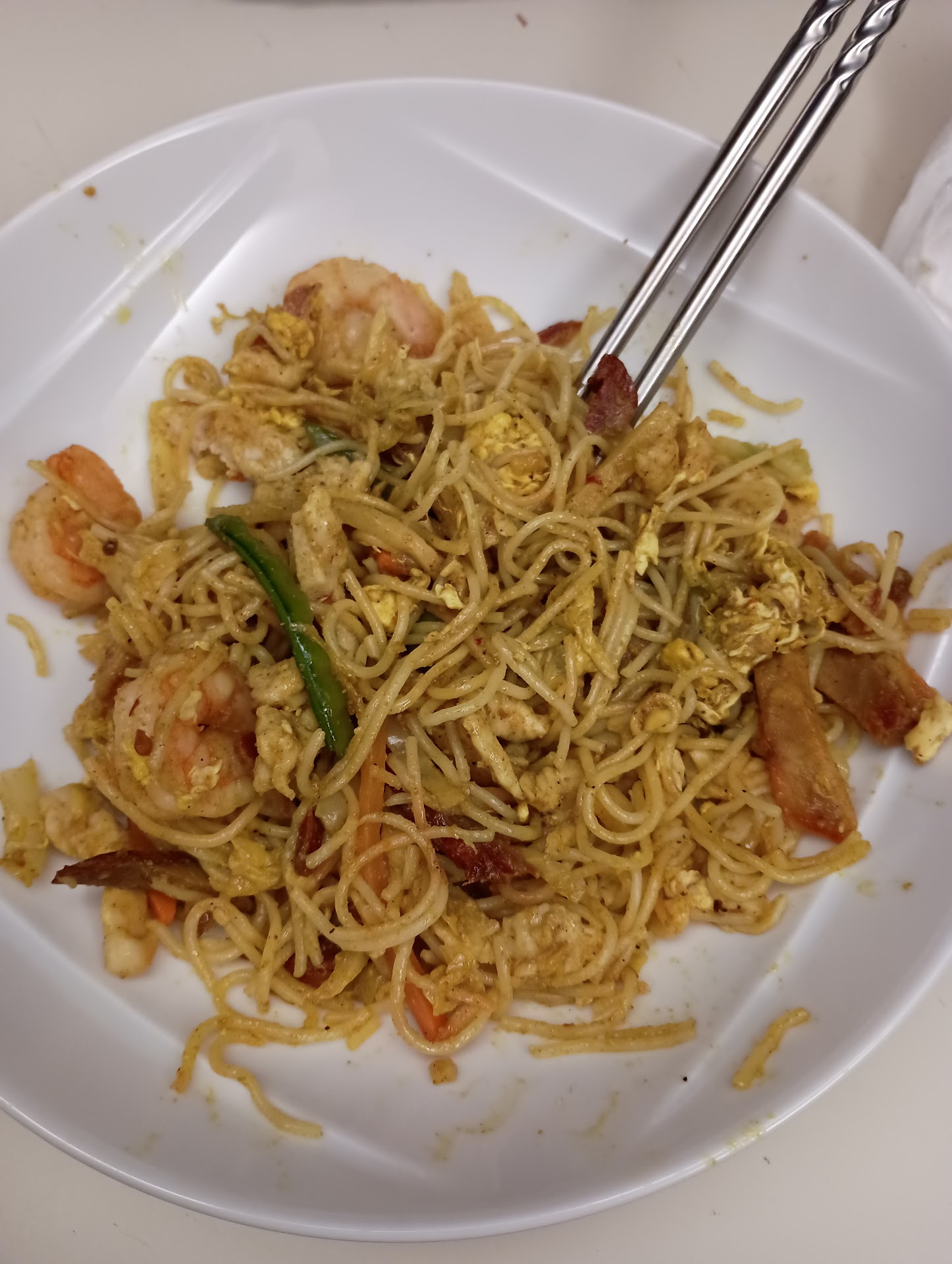 Read moreI thought the food I got was really good. It was very greasy, but that's how I like my Singapore noodles. It was actually spicy when I ordered it spicy. There were a lot of vegetables in the noodles including bamboo shoot, cabbage, peppers, and the meat. I don't know if I actually got extra shrimp in it for the extra $2 because it seemed like a normal amount of shrimp. I guess that's just how restaurants are these days. They cooked it up super quickly. I ordered right when they opened. The people working there seem...