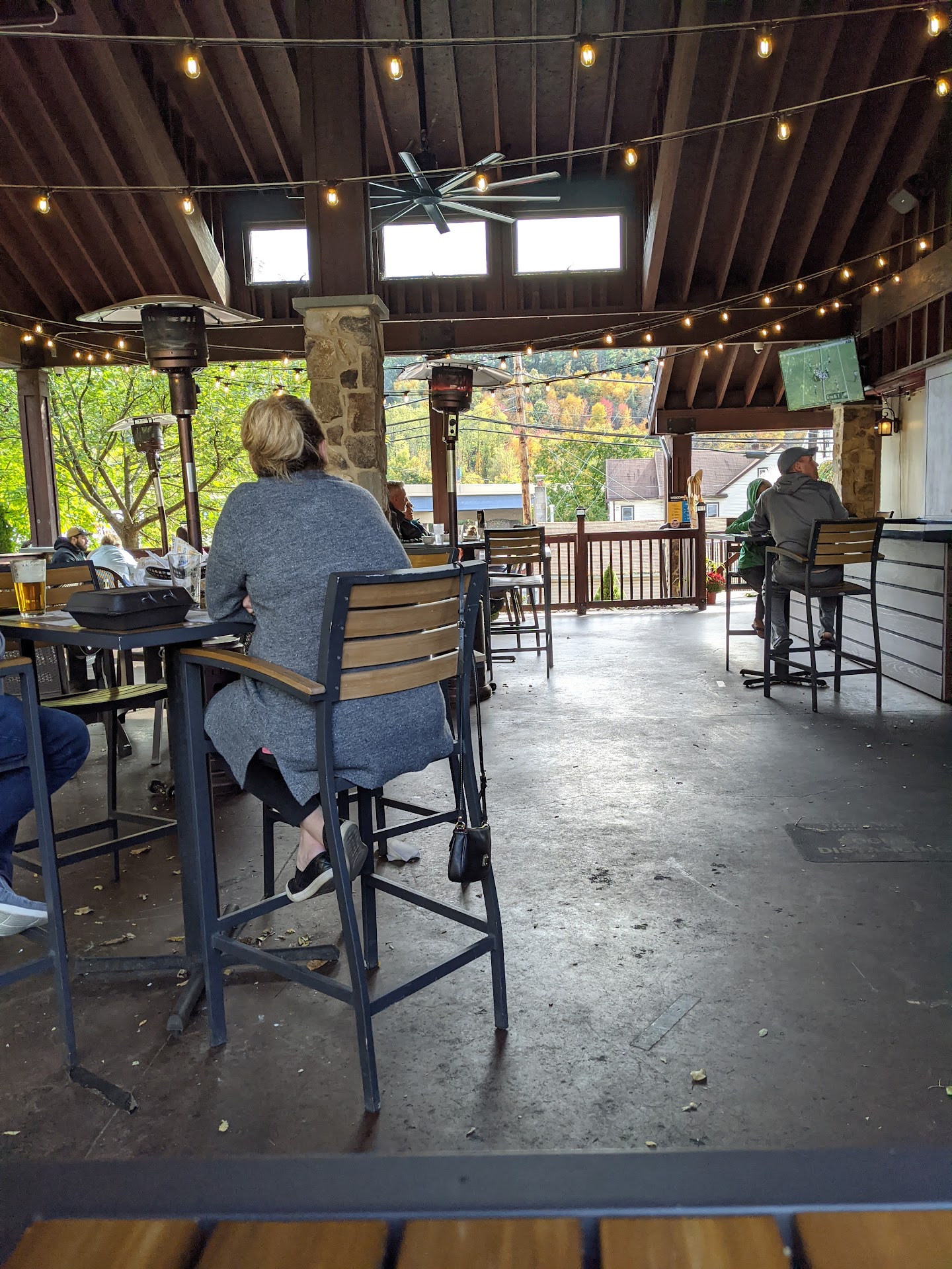 My wife ordered nachos loaded (chili, cheese and sour cream) and I ordered a pj burger (a cheeseburger with bacon and grilled onions).