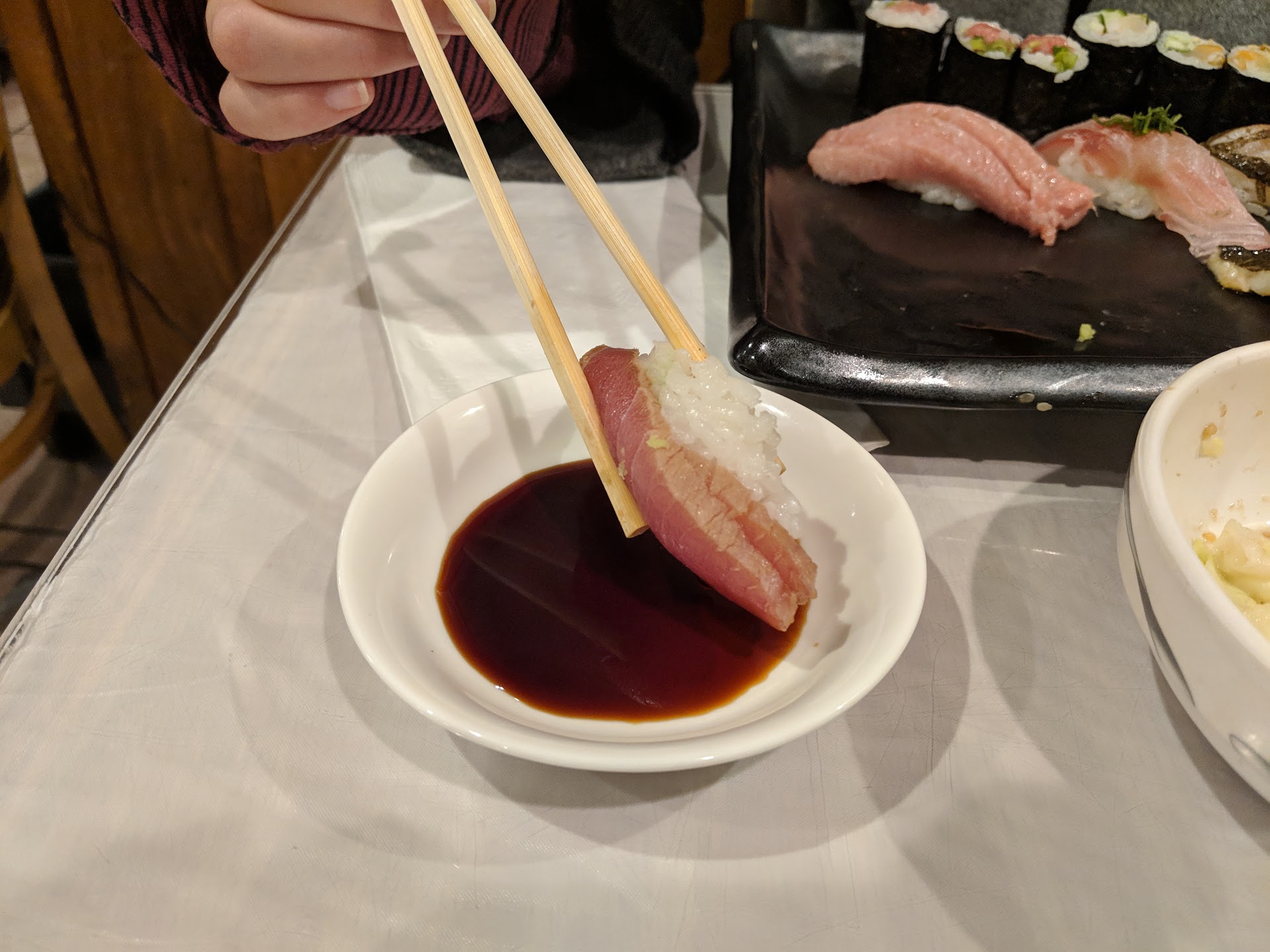 The rainbow roll with lobster tempura (~$17) was very good with the right amount of crunch in the center from the tempura. You don't get many so you would need to order something else with it if you are considering this as your meal unless you're just not that hungry or want something small.