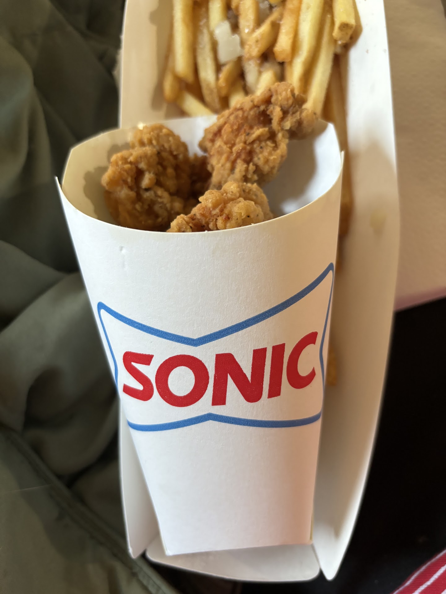 Cons: Food was lukewarm, at best, when I arrived, which was about 12 minutes after I ordered. The staff does not read the tickets closely. I asked for mayo, the Sonic Special sauce, ketchup, salt, pepper, and hot sauce. I received 4 packets of ketchup that were stuck together w/ syrup and 1 Special Sauce for 6 burgers, 1 large french fries, and 1 large french fries with cheese. That was disappointing since I ordered to go and needed those condiments. The burgers were really dry. The fries were not great since they were not warm. Cannot modify the items on the 2...