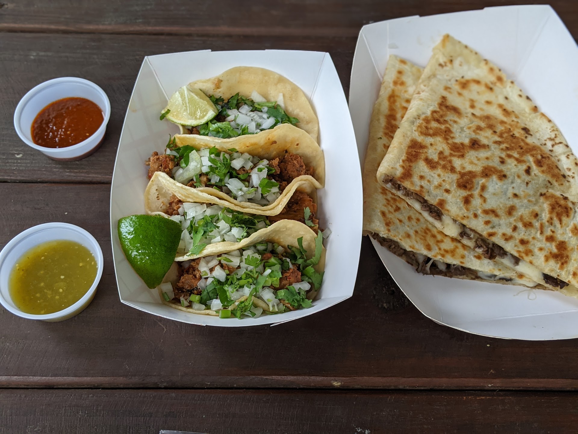 I had the chance to visit for my second time the first time I went for the last day with my oldest daughter I tried the tacos because I love me some real Mexican tacos. I oreded 2 carnitas(shredded pork) & 2 adobada(spicy pork) & 2 Corizo(spicy pork sausage)🤤🤤🤤. I was only able to eat 3 😢. So I slowly had to eat the other 3🤣🤣. Well yesterday since it was nice out I decided to go again and take my youngest daughter. At first she didn't want to go but she changed her mind and was glad she did because she ordered a shrimp and cheese quesadilla and she said it was amazing and worth coming. I ordered an adobada torta because I haven't had a torta in a long time and I never had one before and I am glad I did it was so good 🤤🤤. I usually ordered a Chicken or a Cuban torta. I recommend this place if you are looking for tacos or tortas or quesadillas that are freshly made. Also the service is very friendly and the place is out in nature so you can enjoy the outdoors and...