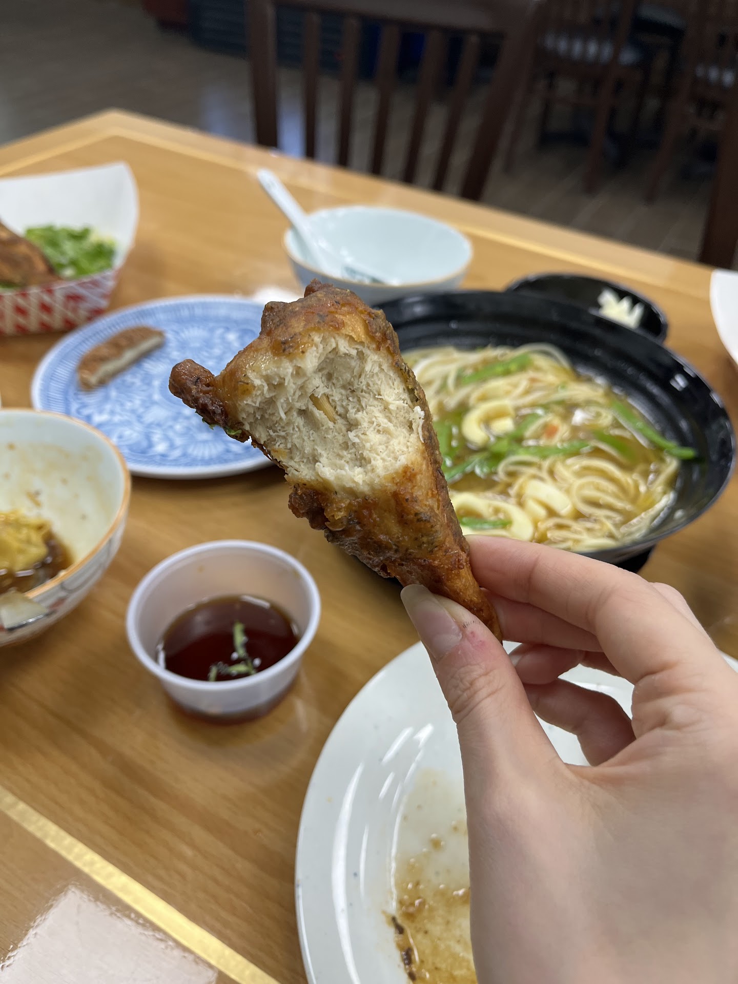 We ordered: Scallion pancake (tasty but nothing unique) Japanese drumsticks (mindblowing) Szechuan dumplings (nice) Tonkatsu ramen with housemade noodles (one of my favorites—tastes like the nostalgic chicken soup you may have had as a kid but somehow they did it vegan) Crispy Soul Chicken (an uncanny replica of crispy, sweet general tso's)