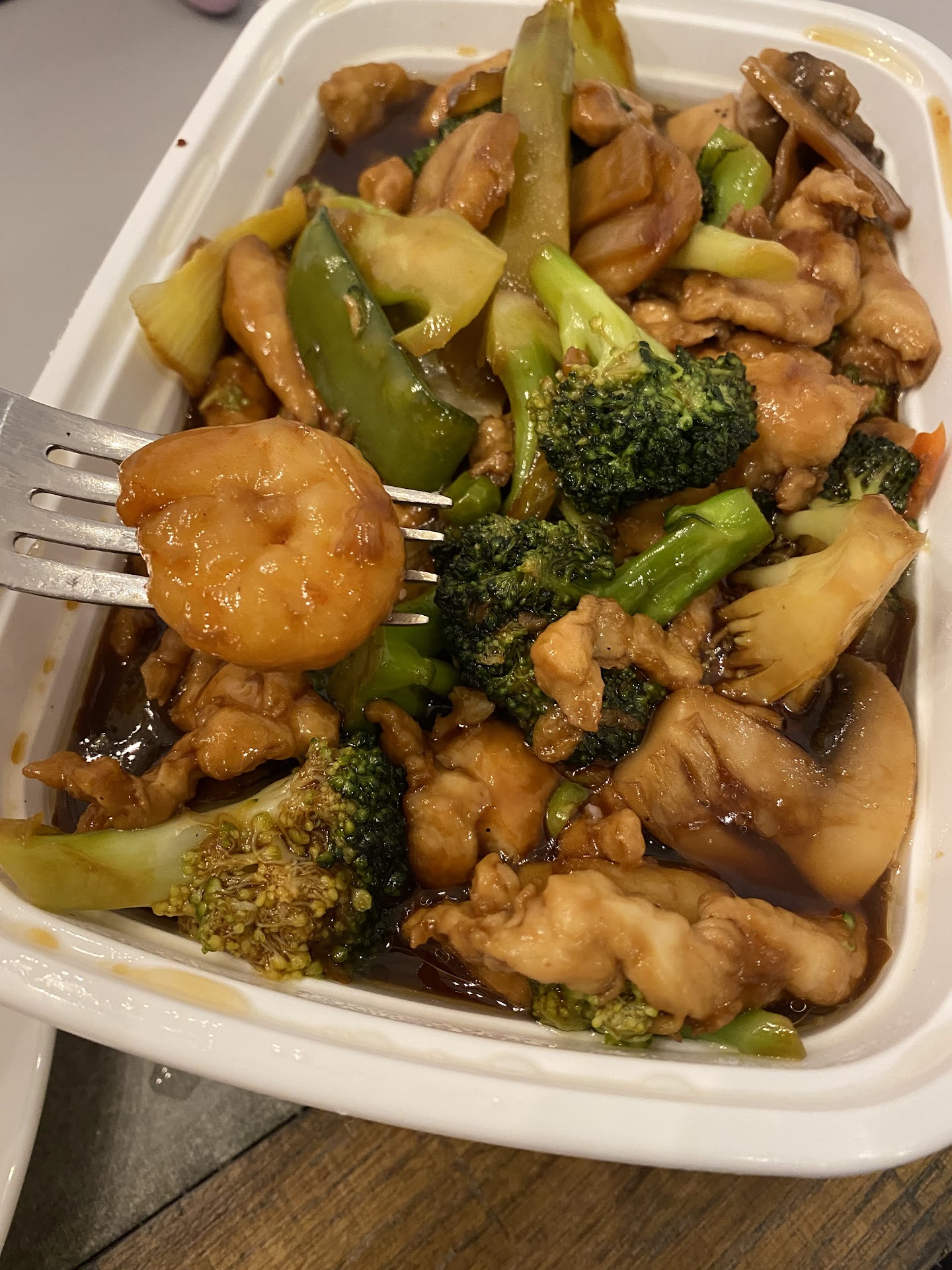 All of these $10 meals were served in a little plastic dish 3” X 6”. Half of the dish is full of white rice and the other side is supposed to be the meal. Cashew chicken was disgusting because it literally had no taste. This place is an old folks dream! No spices - no taste - clear and gloppy gross recipes!