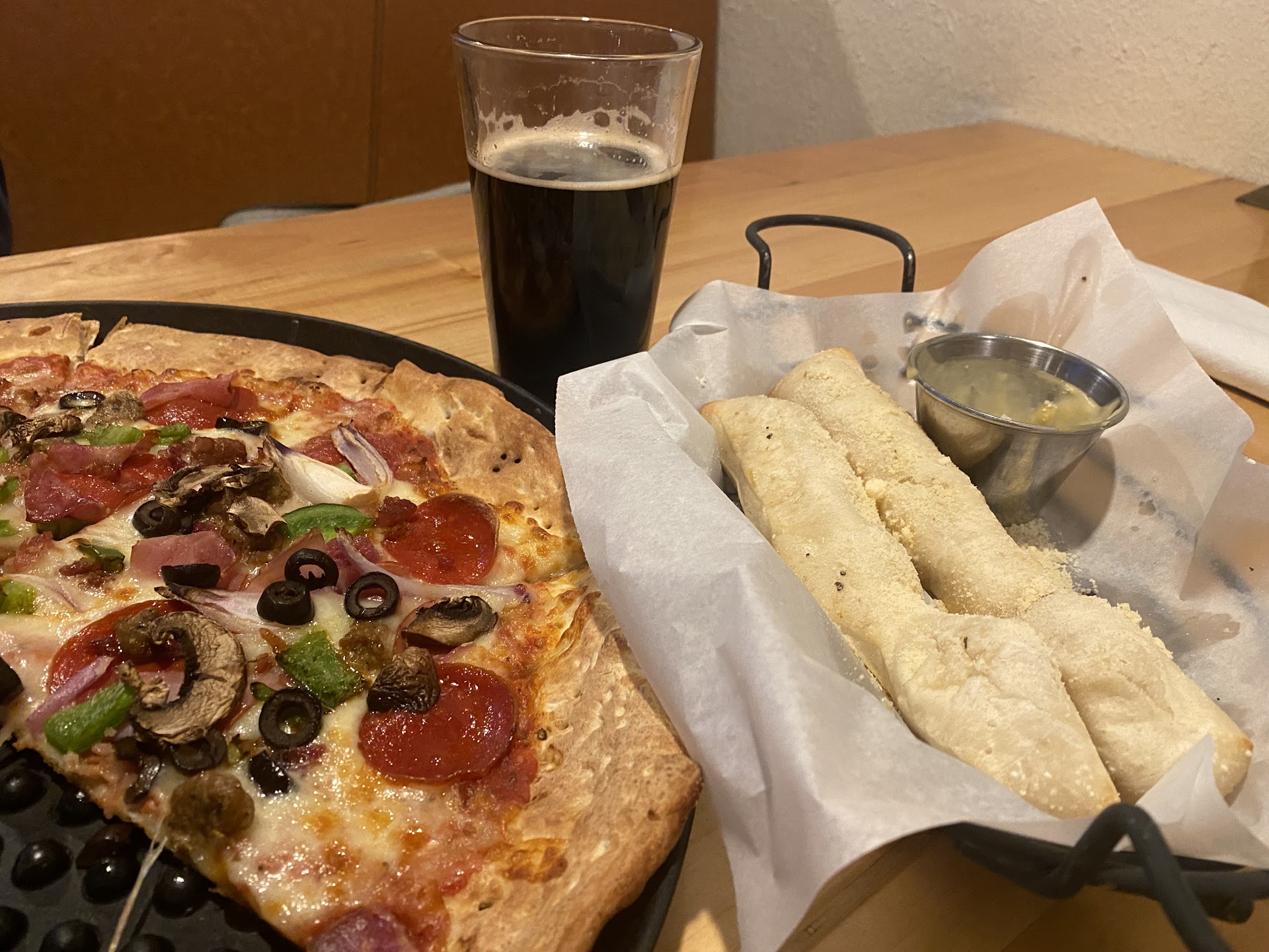 Read moreFirst time at this solid eatery, easily the best dining I've had in Franklin. We were greeted by Kylely a super friendly hostess who asked us if we preferred booth or table. She explained they specialize in craft beer and Hard Truth (Indiana made) cocktails. She offered free samplings of the Hard Truth liquors. I tried the creamed coconut and bourbon -- loved them both but opted for the Porter beer which was a 16 Oz pour and delicious! Then Holly came over immediately to take our orders. We opted for the 16" pizza to have leftovers to take home. The pizza and breadsticks with beer cheese side was a good choice. The thin crust was excellent. My date had the Hard Truth Gin & Tonic. I had a taste and gotta say the gin is delicious. The service we received from Holly was top drawer. What a sweet, competent and engaged waitperson she is. The atmosphere / decor was also excellent with a view of the golf course. The only thing I could find wrong with the place is that the faucet in the ladies room was hard to turn off and on but the sink and cabinet was cool. They should think about changing out the faucet. The sink looked like brass and gave the ladies room an elevated look though I think a place that great should also ditch the pink soap in plastic dispenser and upgrade it too. That's not a complaint just a small suggestion. Holly really made our visit special and is an asset to the business. I'm definitely going back and the menu offerings made me want to try everything. It was the perfect place and actually doesn't cost more than fast food...
