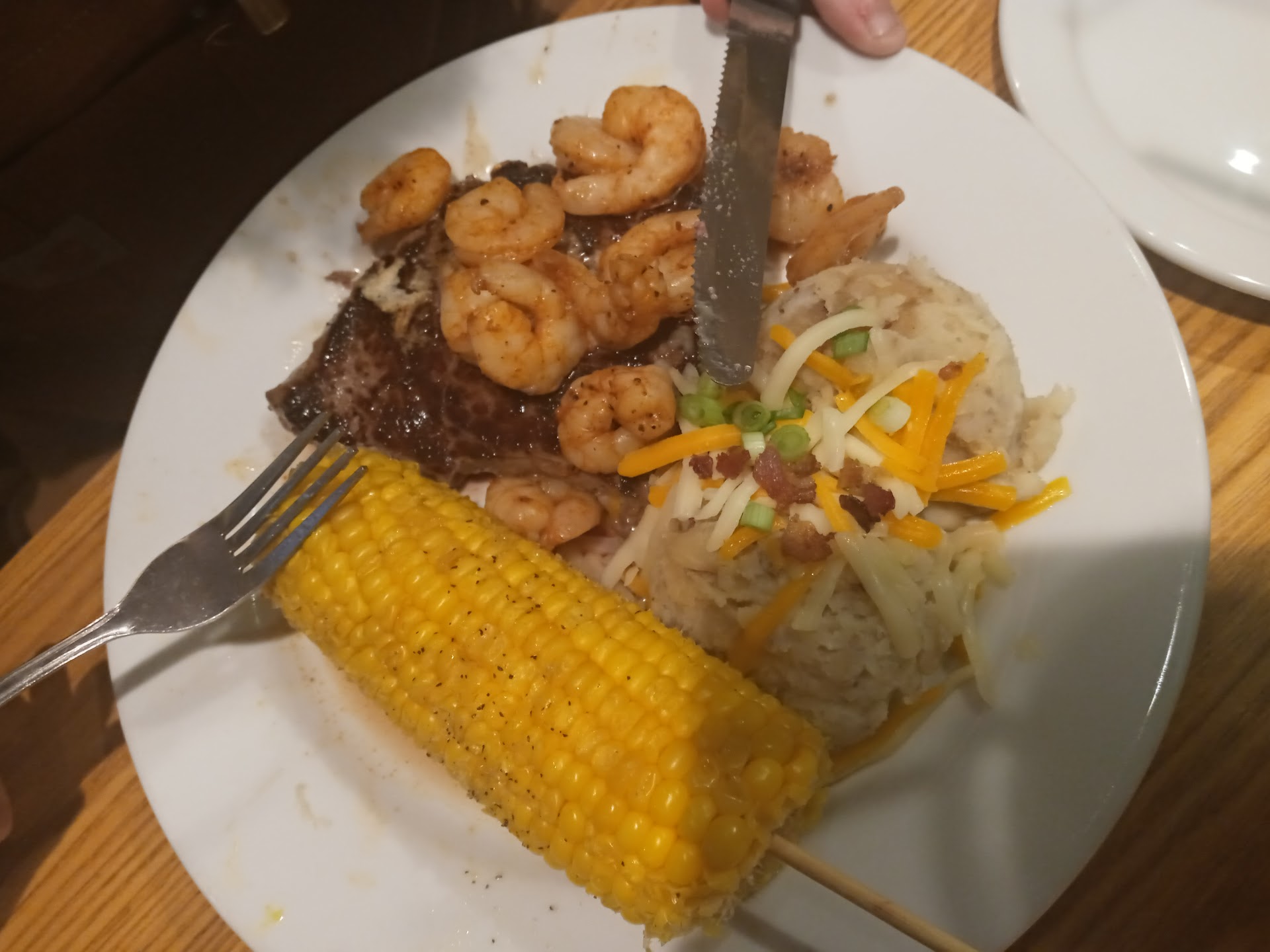 If possible to leave 0 stars, I would. We came in for dinner after a wedding rehearsal, only 9 of us. After about 10 mins we were greeted, and instead of starting with drinks and appetizers, the waitress wanted to rush us into ordering. We all ordered, 7 of us had salads. 10 more mins go by, we start to receive 5 of our 7 salads, yet still had not received drinks. After asking where our drinks were and stating that 2 of our salads never made it to the table, she acts annoyed and brings us 2 more salads, but large salads instead of side salads. Once our meals finally arrive it is a downhill spiral. We had 5 ppl order steak, 2 of them steak and shrimp, yet all 5 plates come to the table w shrimp. She tells us not a problem she will make sure we are not charged. Not to mention, my 8 year old who was one not to receive his salad, also didnt receive his entree either. Now over an hour into the mistakes, we are ready for boxes and our checks, so we request them. 25 mins go by and we are STILL sitting waiting on our boxes and checks. Finally another server brings our boxes over and informs us checks will be right over. We are all able to see the manager helping her separate the tickets, which we gave the orders to her in order od the checks to begin with. Maybe another 10 mins later she finally brings the checks. And guess what? All those shrimp she claimed she would have fixed, she didnt. So once we ask her to remove them like she had promised; she goes and removes them from one and adds them to another persons check at our table. Absolute worst dining experience ever. The waitress was clearly struggling, and the manager had to help her correct many issues, yet she never once apologized nor did the manager ever come over to table touch or apologize. Did I mention there was literally mo business in the restaurant at this time? Almost 2 hours from the time we were sat to actually walk out the...