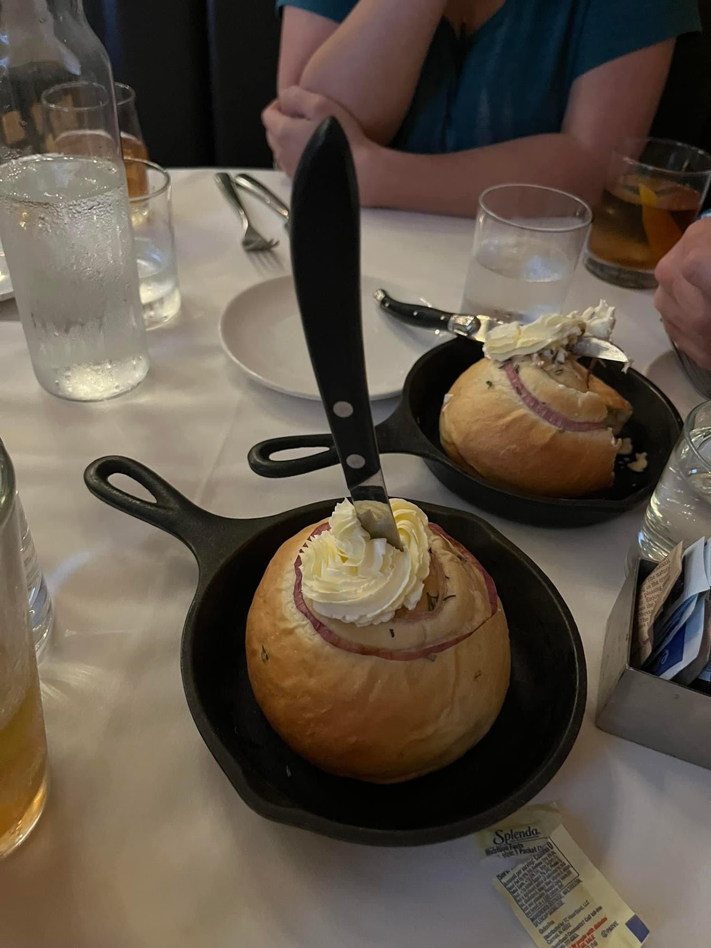 If you want the long review: I made an Open table reservation about 1 week prior to the date night. This was literally the first date night for my wife and I since our daughter was born 1 year ago. We learned it would not be a good date night nor would we be returning to the restaurant. We had the misfortune of having Eric as our waiter who upon us sitting down didn’t welcome us, offer specials, see if we have been there before, etc… just are you ready to order. I guess he knew our check would only be $150 versus a party of four whose check would be more so why put in the effort. We placed our 2 drink order and ironically that took the longest. My wife ordered a signature cocktail which was basically water with lime with a ton of ice. Two sips and it were done… $12 down the drain. Next the highlight of the meal came, which was the warm, toasty, and delicious fresh made bread. That was absolutely amazing and I would have eaten two of them if I would have known. Half way through the bread game our zucchini fries as our appetizer which were great, but literally within 2 more minutes came our entrees. This is what really put me over the edge was the fact that the table was small; no room for the entrees yet here is Eric shoving them in our faces before we even have tried the appetizer with no apology. My wife looked at me and asked why they are rushing us!!! I KNOW any waiter that cares would have kept the food in the kitchen until we were ready especially at a FINE DINING restaurant. This was rude and uncalled for. At that point the food was average with my wife having the New York strip and I tried the gnocchi. We took the leftovers to go and on cue Eric didn’t offer dessert or even try to sell us on one. So I paid and we drove to Sperry’s for dessert. I wanted to thank Eric and management for lack of care and waiter 101 in the dining room. I plan to share my thoughts and reviews with all my other chefs and food loving people...