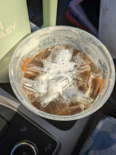 Read moreWe often stop at this Dunkin if we are on our way somewhere because it's the closest to the highway. But it is always so busy! Maybe that is why their quality control is such an issue? But we have never left this location happy with our order. Last time, we ordered food and after 20 minutes, I finally approached them to find out what happened. They made it then and it took a few minutes. I really should have checked it but, of course, I didn't because we were running late. Missing bacon on a "bacon, egg, and cheese". Today, I ordered a large cold brew with cold foam (picture).... Glad to see they we so kind to splash some cold foam on the top. I get it, it's a fast food restaurant. But you are still paying for a product, so I don't think asking for a product to be made correctly is really much to ask.