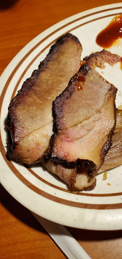 The question of what constitutes good barbecue has as many answers as there are people eating the barbecue itself. However, most everyone will agree that good barbecue should be moist, flavorful, and taste like the smoked meat that it is. What we were served on Monday night was none of those things. Fat Buddies has long been a favorite of ours that we visited anytime we were in the Franklin area. Although it can sometimes be a bit uneven, it has always stood out as a recommended location. Monday's dinner was bland, dry, and chewy. We ordered the full rack of baby backs along with the brisket. When our meal came, the brisket was missing, and so our server went back to get it. A few minutes later, what arrived was five thin strips of what looked like turkey bacon given to us in a bowl. The strips of meat were sliced deli-thin and were beyond dry. It was obvious that they had been reheated either on a flat top or even in a microwave. When I liken them to turkey bacon, that's what they reminded us of. Each strip was crisp and flavorless with no smoke present at all. Once we got into the ribs, we found that they were also dry and incredibly chewy. Again, obviously reheated to the point of no return.