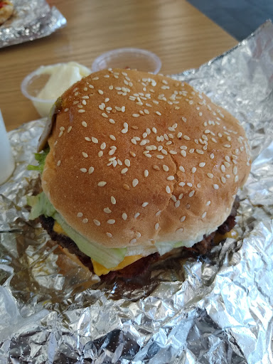 Got a regular burger and fries take out for dinner. The food is excellent and delicious. If you want a burger, Five Guys is your place. And the fries, be hungry. You get amazing value for what you order. You probably want one regular fries for each two or maybe even three people in your group. Worth it. Dine in is available and in good shape. Parking is a bit tight at this location. But they have spots. The staff are nice but need to pay attention to detail. My order was given to another person before I got there. He had only the same first name. So I had to wait for my order to be made again, even though I ordered in advance via phone before I got there. I didn't wait long, maybe ten minutes. Still a blemish on an otherwise great meal. I think I will go back, but only if I know I will have extra time to deal...