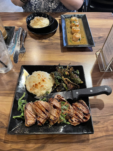 The food was good. It's all farm-to-table and they try to make as much of their products as possible. For instance, my daughter ordered lemonade and said it tasted "funny" because the poor girl apparently has never had fresh squeezed lemonade. I thought it tasted great. The pricing is a bit inconsistent and I was surprised at the overall total. For example, we ordered the fried green tomatoes as an appetizer. It was absolutely delicious, but it was literally one tomato in 4-5 slices for $12. My pork tenderloin entre with vegetables and mashed potatoes was around $27. Either add more to the appetizer to make it worth the money or reduce the cost to remain consistent with the rest of the menu. The other inconsistency was a salad my daughter ordered. It was $9 on the menu, but I was surprised to see that adding chicken added another $8. It was a large enough portion, but the chicken was a little on the dry side and didn't quite provide the flavor I expected for double the price. The kids menu is severely lacking. It consists of chicken nuggets, grilled cheese and a fruit cup. Fries come with both the nuggets and the grilled cheese. I'd love to see restaurants adopt the idea of allowing kids to just order smaller portions of items off the main menu. My pork tenderloin (pictured) was good, but also just a little dry. The mashed potatoes were delicious and sauteed squash & zucchini were decent. Overall, the food was good and I look forward to trying different menu items.