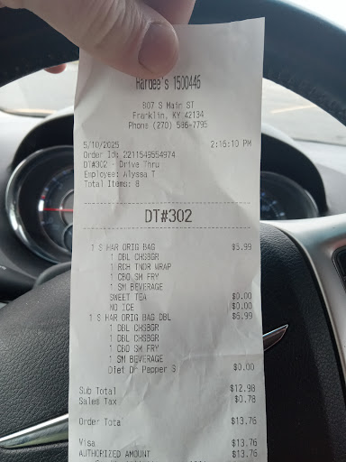 Read moreThis was the first time I've ever been so disappointed with Hardee's I love Hardee's I've never once had a bad experience but today. Wasn't far the worst I went in and I had ordered two original bags with hamburgers and I ordered a bacon egg cheese biscuit after waiting for 15 minutes I asked a woman by the name of Cheyenne how much longer and she rudely extended her arm like I was in the way and said I don't know I don't know I haven't had a break I'm hungry mean while she had been eating french fries out of the fried basket. only 5 people were in lobby and I ended up having to ask for a refund after 20 plus minutes of waiting three more people walked out along with me due to this woman's behavior this is just sad no one has any right to treat people like that Hardee's is supposed to be a family orientated fastfood restaurant but as long as they have her working with her attitude it simply can't be and in till then I will not be back no more mobile ordering no more ordering on door dash and I will never ever go in there again worse...