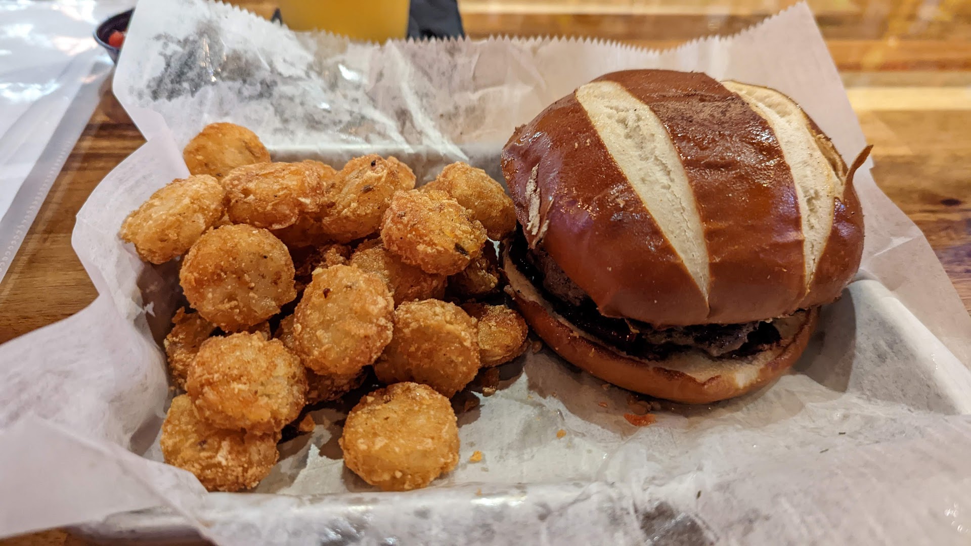 Read moreHop House has been on my radar for some time, but I don't find myself in Franklin as often as I used to. I finally went and checked this joint out around 5pm on a Friday. I was immediately impressed by the vibe and beer offerings. As someone who doesn't care for IPAs, I was pleasantly surprised that there were multiple offerings of different varieties. More specifically, they had some seasonal Marzens that I was more than happy to try. The service is pretty laid back and not particularly in a rush (not in a bad way) to do anything. Multiple bartenders were cool with my buddy trying about half a dozen samples to find something he'd enjoy. I went with the pretzel burger for food. That was a solid burger. The real stars of the dish were the tots. Phenomenal. There's definitely a neighborhood presence, as most of the bartenders knew about 15 combined patrons that came walking in at different points. Price point is about average for what one can expect. Five beers and a plate of food ran me roughly $45 before the inclusion of tax. I've added this chill spot to my rotation, and will definitely be back soon. High praise, Hop...