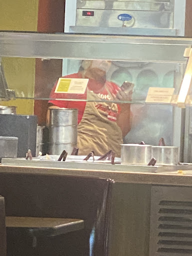 We went for the salad bar around 5pm and when we went to the salad bar so many of the vegetables and sides were empty. There was a Hispanic woman named Laura I think that’s what her name tag said that was supposed to be working but was instead standing by the icecream machine talking in Spanish on her cell phone with it on speaker. She was having an entire conversation on speaker instead of doing her job. I literally had to go over to where I ordered and ask if somebody could refill for five of the items that were completely out. She then sat her phone down as the gentleman started to walk over to help me and gave me an extremely dirty look all while she continued to have her conversation on speaker as she started refilling the items.