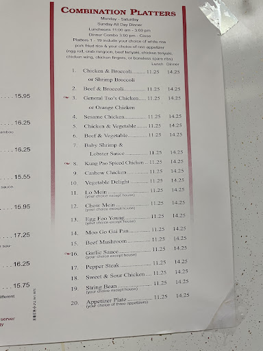 Read moreOrdered a pu pu platter for 2 substituting the chicken teriyaki and boneless ribs (heard they weren’t the best there) for more crab rangoon and beef teriyaki, pork fried rice and pan fried dumplings. I placed the order online and for pickup at a certain time. I showed up right at that time and the kid at the register couldn’t find my order. Lady from out back said she made it already and he must given someone the wrong order. She said she’d remake it. 10 minutes later it was done. As I walked to my car I could smell something was burnt. We got 2 extra crab rangoon and one extra teriyaki stick. Those substitutions cost $2.00 each! The rice was tiny and maybe 1 1/2 servings and the dumpling were a little burnt. Cost me close to $50 and no leftovers for 2 people! Pretty disappointed and...