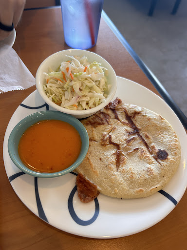 pupusas - it’s a delicious corn meal patty stuffed with cheese ! They add meat, spinach , zucchini or beans . The slaw that comes with it pairs perfectly with the flavors . It comes with a red or green sauce .