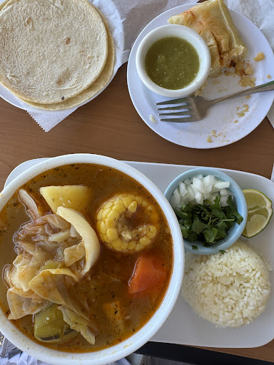 there soup is delicious , lots of veggies and it’s well seasoned broth . It’s perfect for a cold or hot day . It comes with a side of rice and tortillas 👌