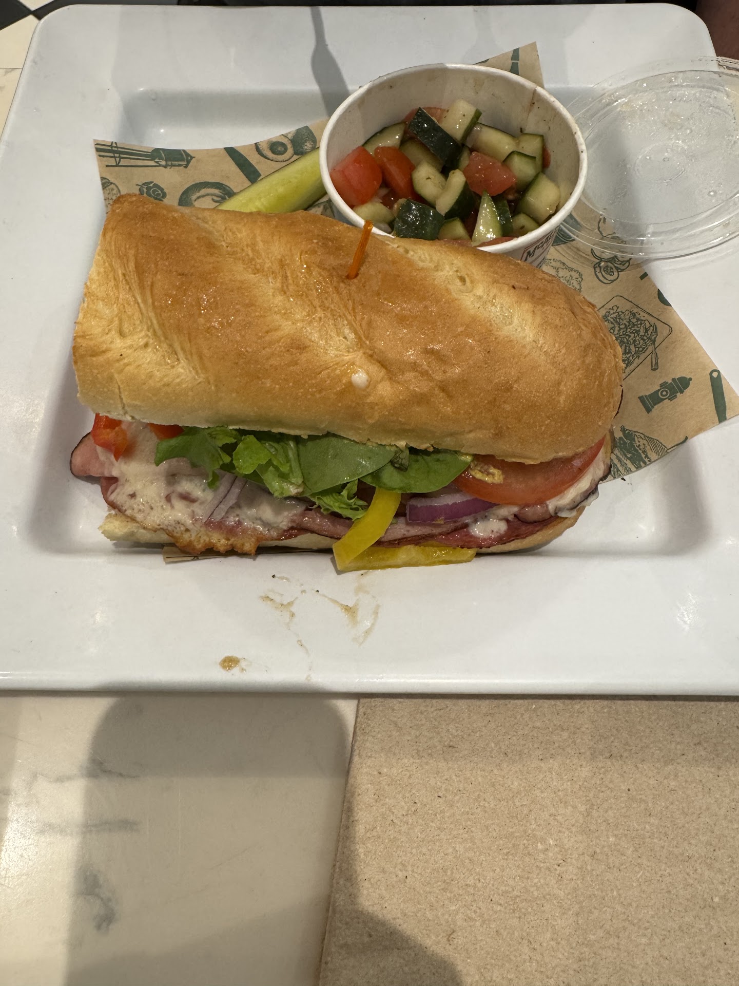 Read moreIt was just okay. 1:15 pm on Tuesday. I stood in line at lunch time for 15 minutes with only 4 patrons before me. When placing my order, the cashier had problems clearing their computer. I had to repeat my order 4 times before we could pay and get our food order number. Clearly the staff had major problems using their order entry system. It took another 20 minutes for the food to be delivered. By now our lunch hour was almost gone - we had less than 10 minutes to eat. The sandwiches were ok. The soup was bland, but after adding a lot of salt it was better. When I arrived, every table in the dining room was full of used dishes and trash. It looked like they had just been through a huge lunch rush. But this did not justify the underwhelming service and...