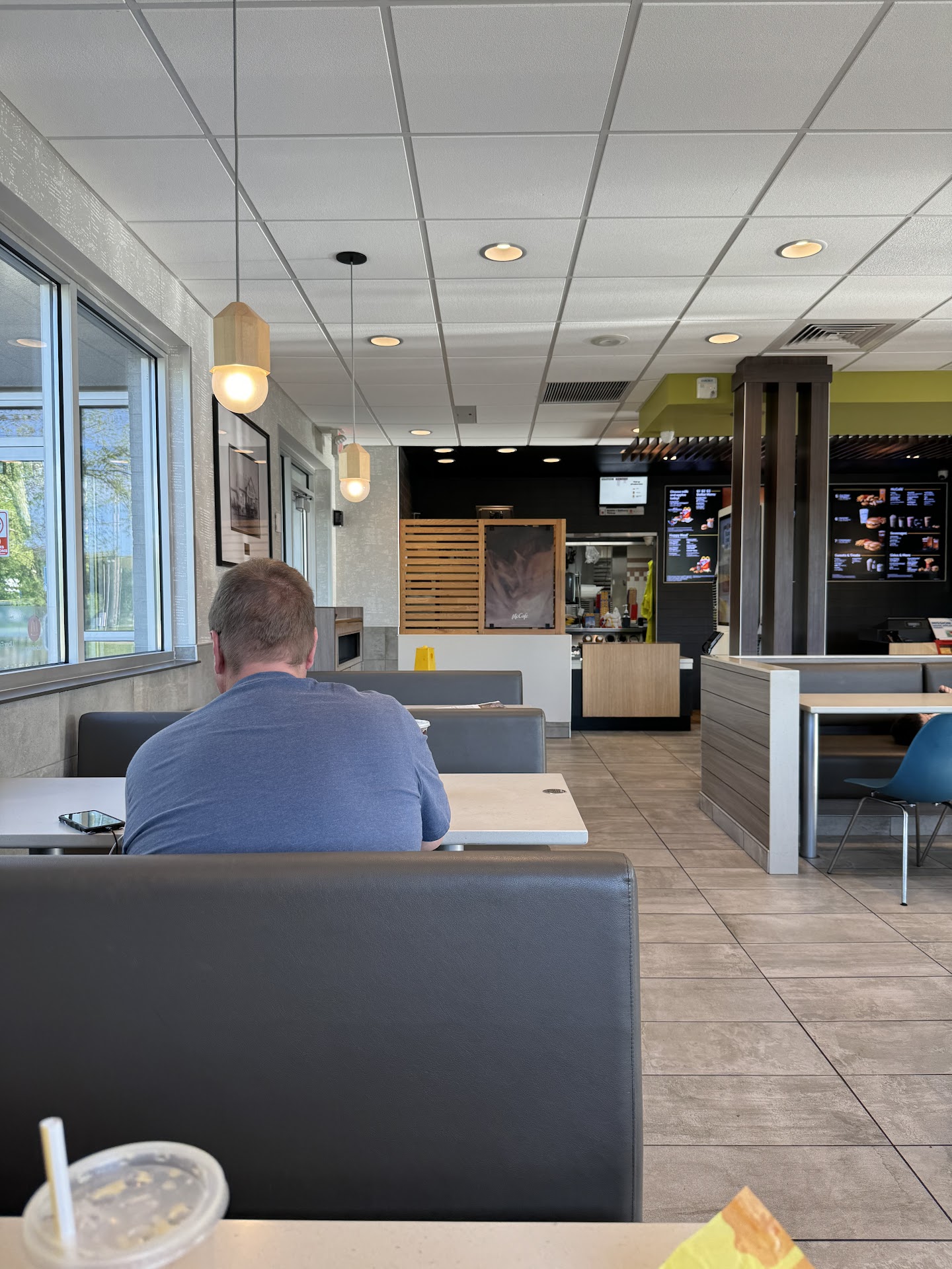Fortunately I knew what I wanted to order ahead of time. Unfortunately I ordered breakfast food in the middle of the afternoon so it took forever. Google requested that I rate my visit so othets will know what to expect. I rate 2stars because of the slow service and About a year ago McDonald's change all of there menu boards to these awful automated ones that change while your trying to read them. Had I not known what I wanted to order, I could've been in danger of an epileptic seizure just from trying to read the menu board that keeps flashing to the most expensive signature items sold at McDonalds and eventually it flashes back to all the other regular menu items, but you've got to pay really close attention to the flashing, so you don't miss when it finally gets to that particular menu board again and then you need to read it really really quickly before it changes on you again. What you can expect upon visiting McDonalds is to feel like you've just finished you college midterm reading assignment and also the mathematics midterm part, as there are hundreds of large useless numbers in the form of calories per sandwich listed after each sandwich, but sometimes you can even catch the smaller numbers which define the prices of each sandwich on your very first attempt of reading those awful flashing menus. Upon me entering the bathroom stall, the toilet was full of feces and when I tried to use the bottom of my shoe to flush the toilet, it wouldn't even flush. Then I almost slid hands first into the urinals when the bathroom floor was covered in the same grease used in the frying machines. Somehow I rate a 2star instead of 1star, because there are actually worse places I've been to in...