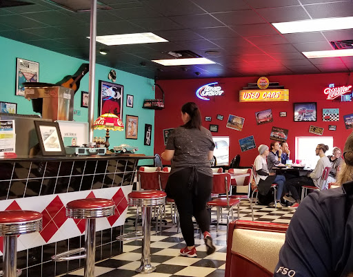 Read moreThis was one of the highest rated restaurants in Franklin and was on a 30 minute wait when we arrived on a beautiful Sunday afternoon. We were quoted 30 minutes for a table of 4 @ 1:11. We were called to be seated at 1:54. It took a while for the server to stop by. We ordered two fountain cherry cokes, 2 waters and and chocolate milkshake with an appetizer of fried pickles. The cherry fountain drinks were good. The pickles tasted like the fryer oil was old. At this point the milkshake hadn’t yet arrived but they were making them constantly so we figured they might be behind. We ordered kids hot dog and fries, kids grilled cheese with waffle fries on plain white bread, Some Like it Hot Burger, and Philly Cheesesteak both with onion rings. It took about 40 minutes to get our food: 2:40, and was missing the waffle fries, and still didn’t have the milkshake. The A-1 sauce wasn’t A-1, the hotdog was dried out, the Philly didn’t have very much flavor, and the waffle fries had some weird granules on them and all the fried items tasted like old fryer oil. The onion rings were tasty, if spare. The Some Like it Hot burger was very good and my husband would be happy to return for it alone. The total bill was $67 before tip. Frankly, the quality of the food or service didn’t match the too-high prices. The ambiance of vintage diner was cool, they have a nice patio, and they had a bubble machine outside to entertain the kids while we waited, which was nice. Maybe it was just a one-off bad...