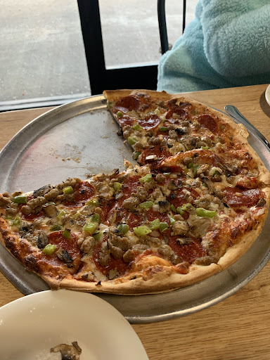 Read moreThe pizza is usually good. However, the last time we were there the waitress brought out a pizza that was way, way overdone. The cheese was clearly burned hard, and the crust was more like a dried cracker. We were in a rush so we could not wait for a second one. I flagged the manager and she immediately knew. She had passed the table a number of times and could not have failed to see it. Shame on the cook for letting that pie out of the kitchen, the waitress for serving it, and the manager for not saying anything until I called her over. We didn't pay for it as she agreed it was burned, and left most of it there. We didn't stiff the waitress though who was a young girl. The house salad is not very good. The service is good, and the waitress and manager were friendly. The place has black painted drop ceiling tiles and low light. The outside light is so bright that it is difficult to see inside, especially if you are facing the outside windows. If you have the time, order out, and check the pizza before you walk...