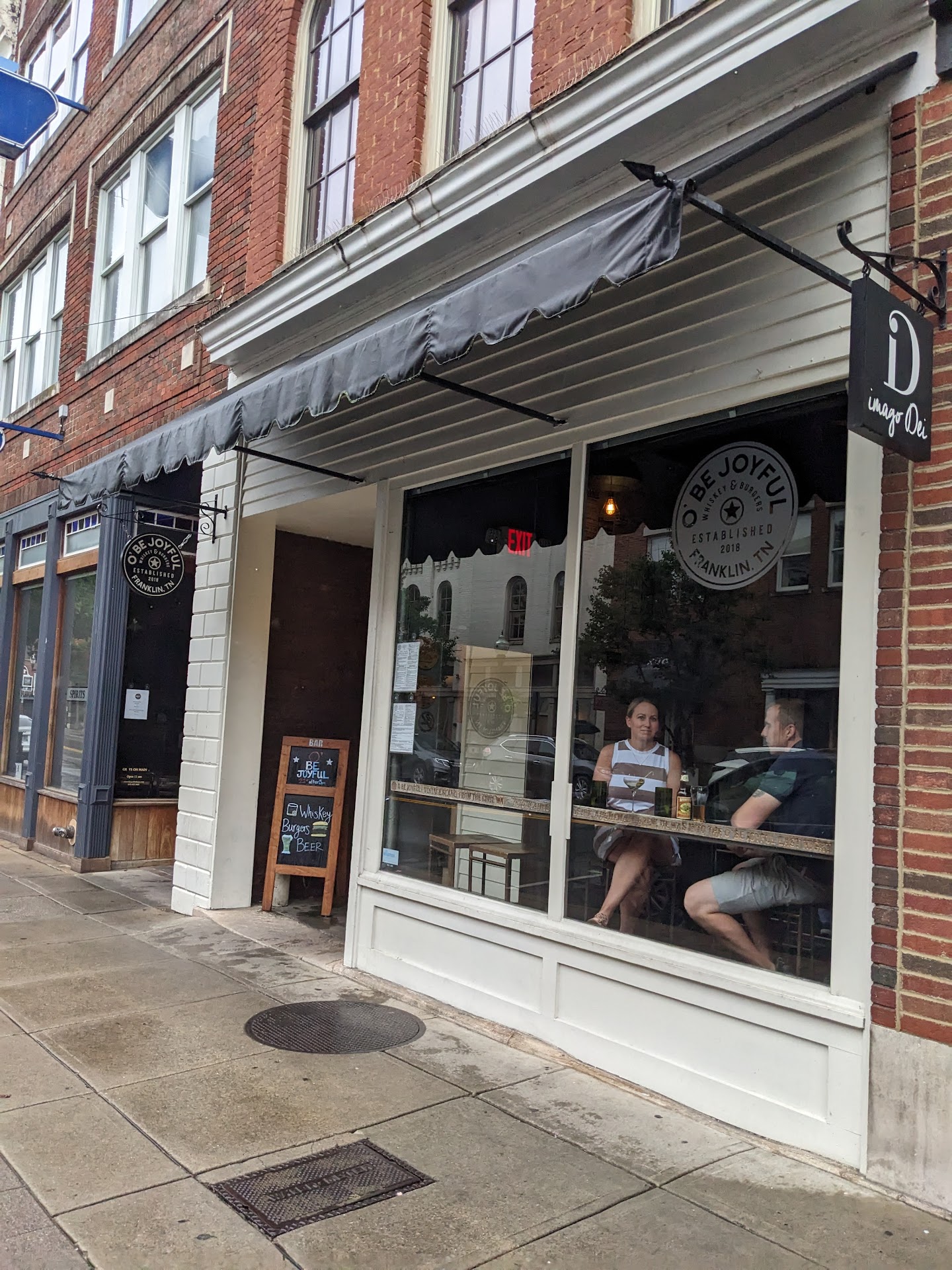 Read moreMy first visit to O'be Joyful. I am familiar with the parent/sibling establishment Grays on Main next door, so arrived with the expectation of receiving the same attention to detail and high standard of food and service I was accustomed to at Grays. I was not disappointed! Will, the server behind the bar, greeted me warmly and promptly. He explained they specialize in burgers and whiskey and recommended the black and blue burger. I confessed I am not a whiskey drinker and he showed me the extensive beer list. Whew!! I ordered a Hap and Harry Tennessee Lager and was thrilled Will poured it carefully so as to not create half a glass of foamy head. I read the menu and decided on a plain ol' burger, single patty, pink, with mayo and pickles on the side, and the bun well toasted. The burger arrived quickly, and prepared to order. The burger was mildly seasoned, relatively moist, and flavorful. Superb! The fries were hot, crispy, and not thick cut. Just the way I like them!! I visited between meals, 2:30 in the afternoon, so it was quiet at the time. The music choice was a good selection of contemporary popular music, played at a comfortable volume that permitted conversation. All in all an enjoyable experience and a "must stop" during your next visit to Main Street, Franklin,...