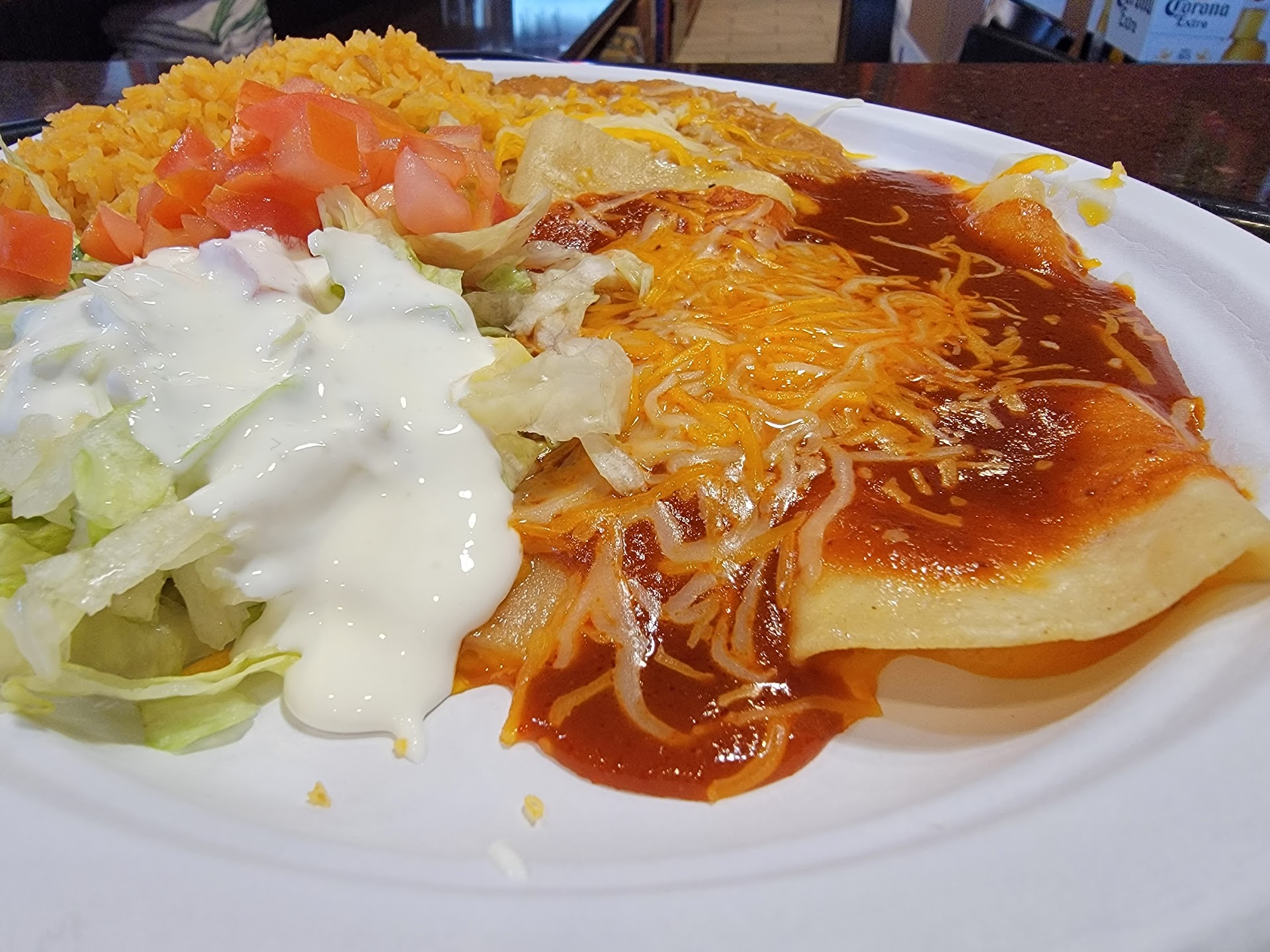 I ordered a chicken taco & cheese enchilada with Beans and rice. The pico was in it tasteless. The red enchilada sauce was seasoned with cinnamon. Bleh.