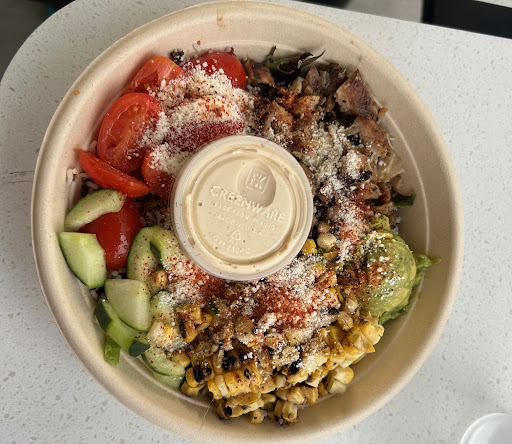Read moreLove, love, love this place! My sister and I were super hungry when we arrived, so we really appreciated the fast turn-around of our orders. I chose the Mexican Street Corn Caesar Salad and I would eat this every day if I could. It was bowl style and everything was super fresh and beautiful: grilled chicken thighs, seasoned street corn right off the cob (heaven!), cotija (cheese?), tomatoes, cucumbers, and lime over a bed of delicious greens with a killer house-made Caesar dressing. I like a lot more dressing but I like how having to ask for more prevents waste. I was very sad when I was done eating this masterpiece! Loved the staff's energy and friendliness. This place sits beside a stylish outdoor space in the middle of retail shops. We ate in Radish's cute outside area on a breathtaking day of blue skies and no wind, while we took in all the activity...